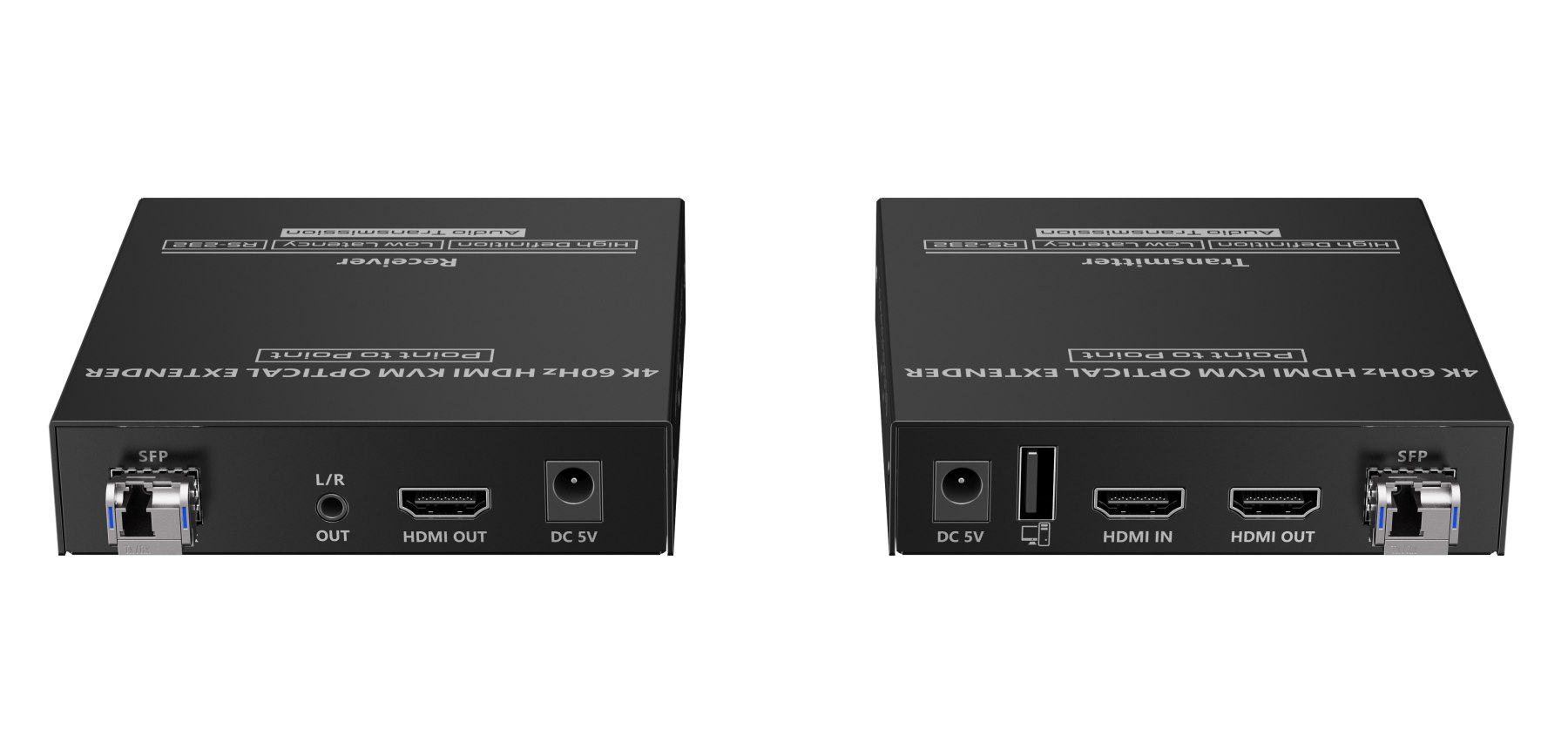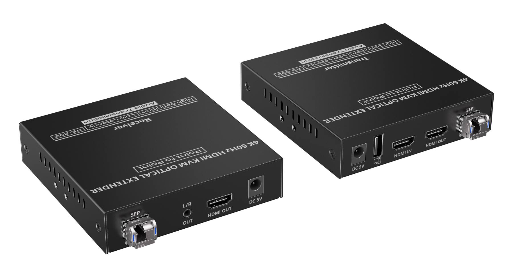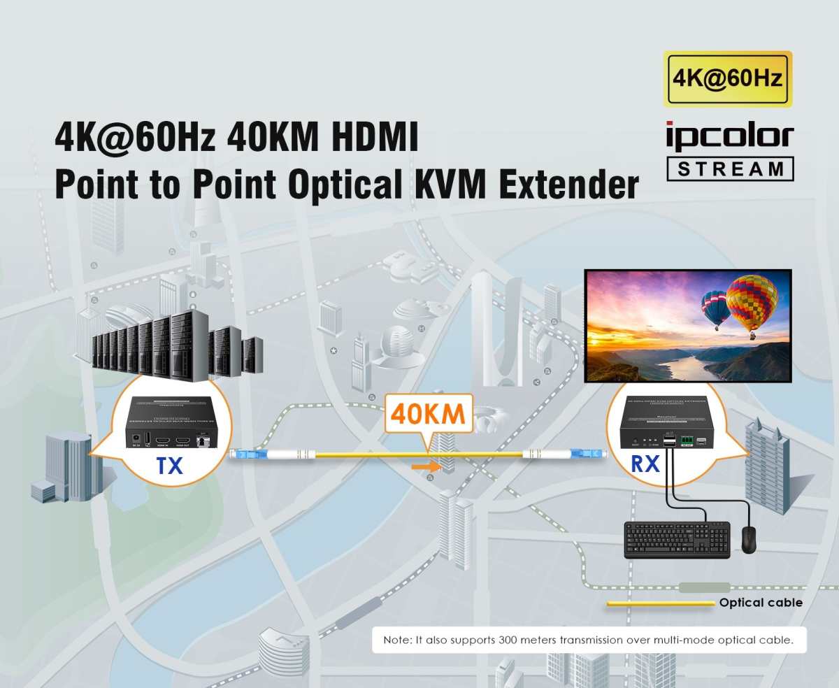 Přenášejte obraz HDMI a ovládejte PC na vzdálenost až 40 km pomocí optických kabelů. Kromě toho můžete přenášet signály dálkového ovládání IR do zdrojového zařízení a RS232. Zdrojové zařízení tak můžete ovládat z přijímače. Pomocí tohoto vysoce výkonného video systému můžete napájet mnoho přijímačů na velikou vzdálenost pomocí optického přepínače. Tato sada se skládá z modulu vysílače a přijímače a je zvláště vhodná pro přenos signálů HDMI na velké vzdálenosti. Ideální pro spojení mezi budovami nebo velkými průmyslovými komplexy.