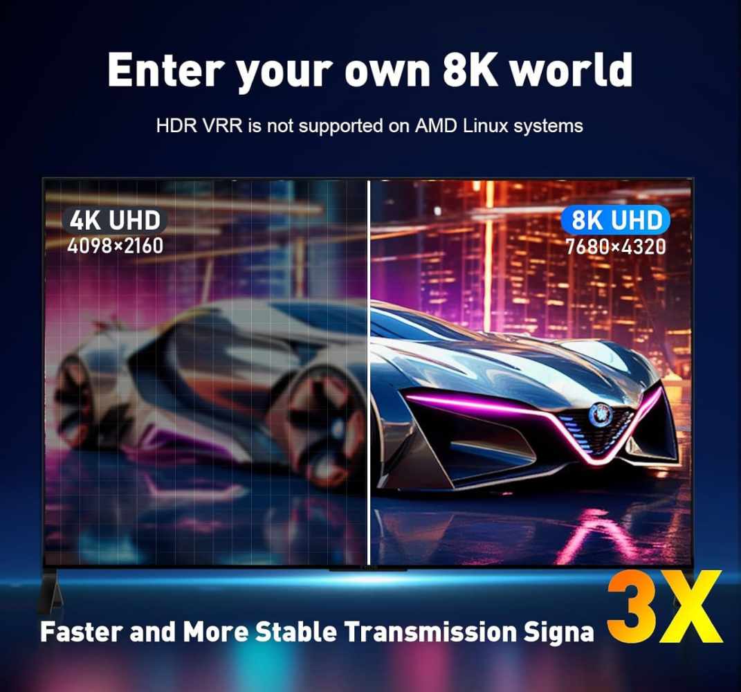 - HDTV rozlišení: 480i,576i,480p,576p,1080i,1080p, 2K165Hz/240Hz , 4K@60Hz/144Hz, 8K@60Hz