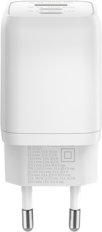- S výkonným výkonem 65 W a všestranným připojením USB-C™ je nabíjecí adaptér vhodný pro téměř jakékoli zařízení – od chytrých telefonů po vysoce výkonné notebooky.