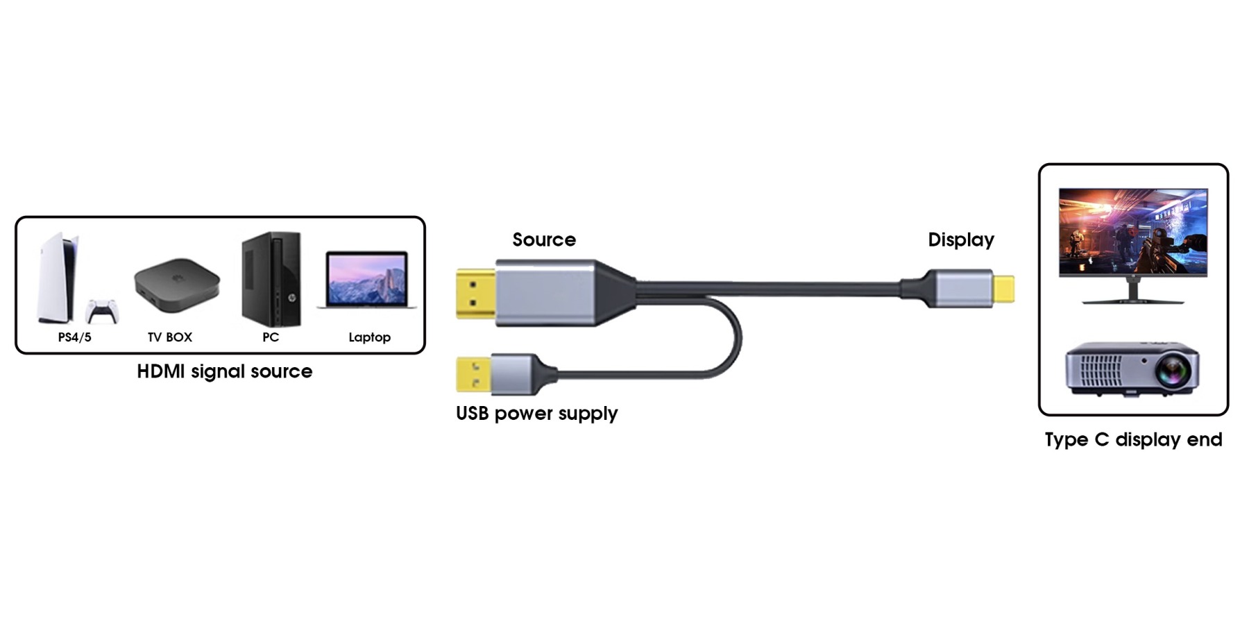 Umožní zapojit nové monitory nebo promítačky se vstupním konektorem USB-C k počítači nebo notebooku s výstupem obrazu na HDMI.