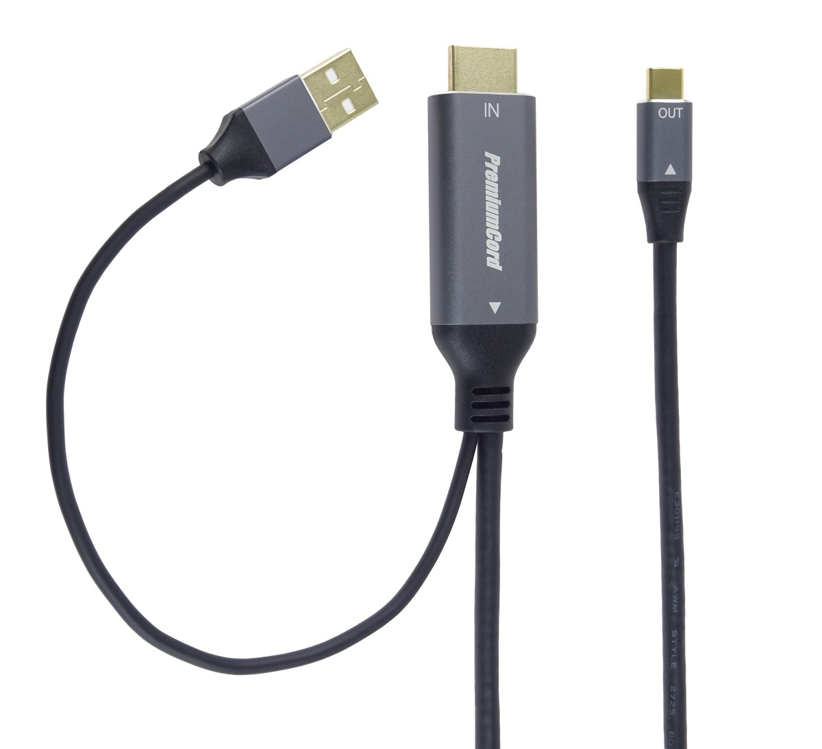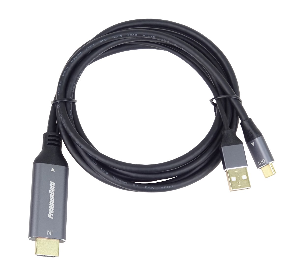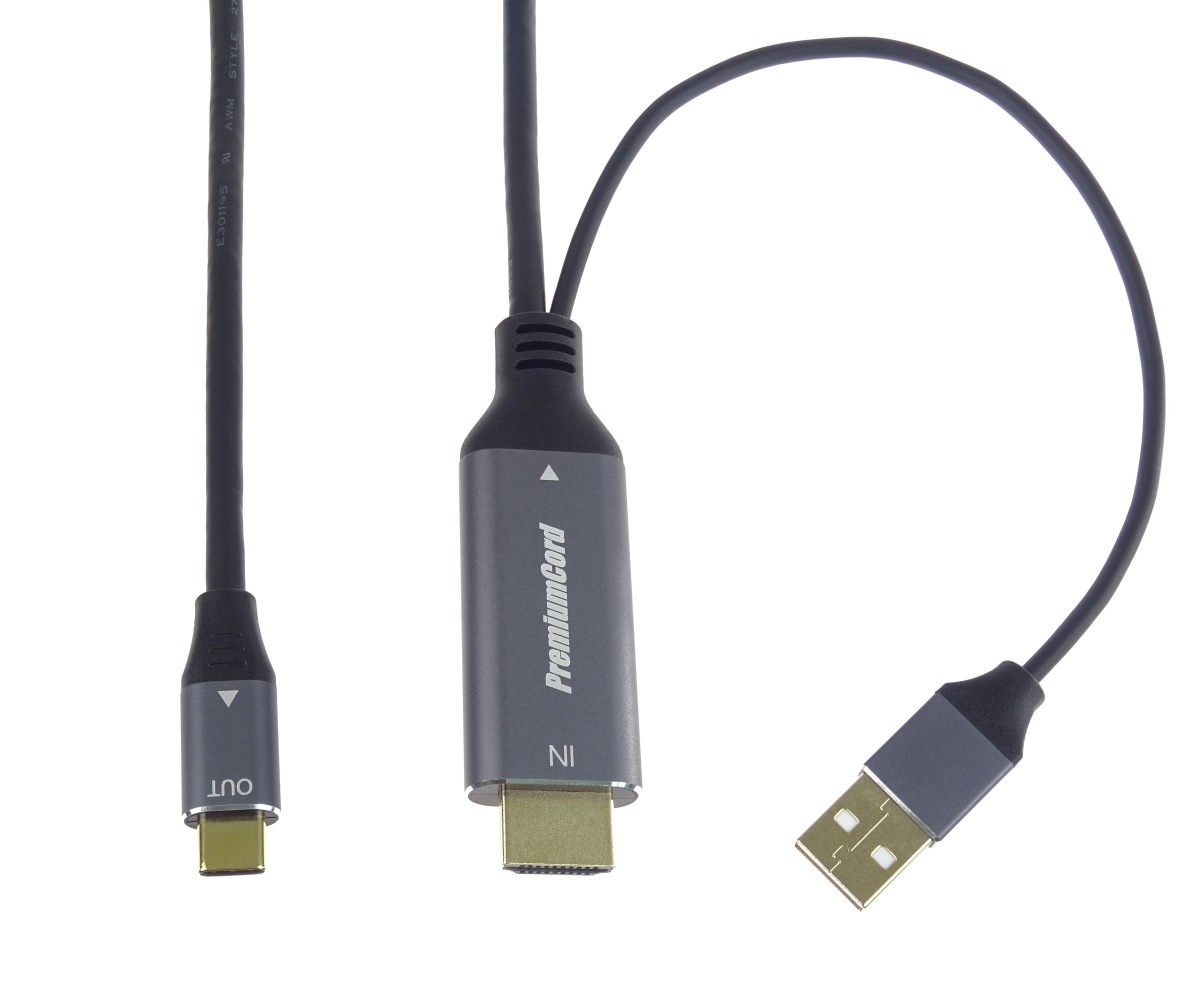 PremiumCord HDMI2.0 na USB-C kabel pro monitory s USB-C konektorem, 4K@60Hz,1080p Aluminium 2m
