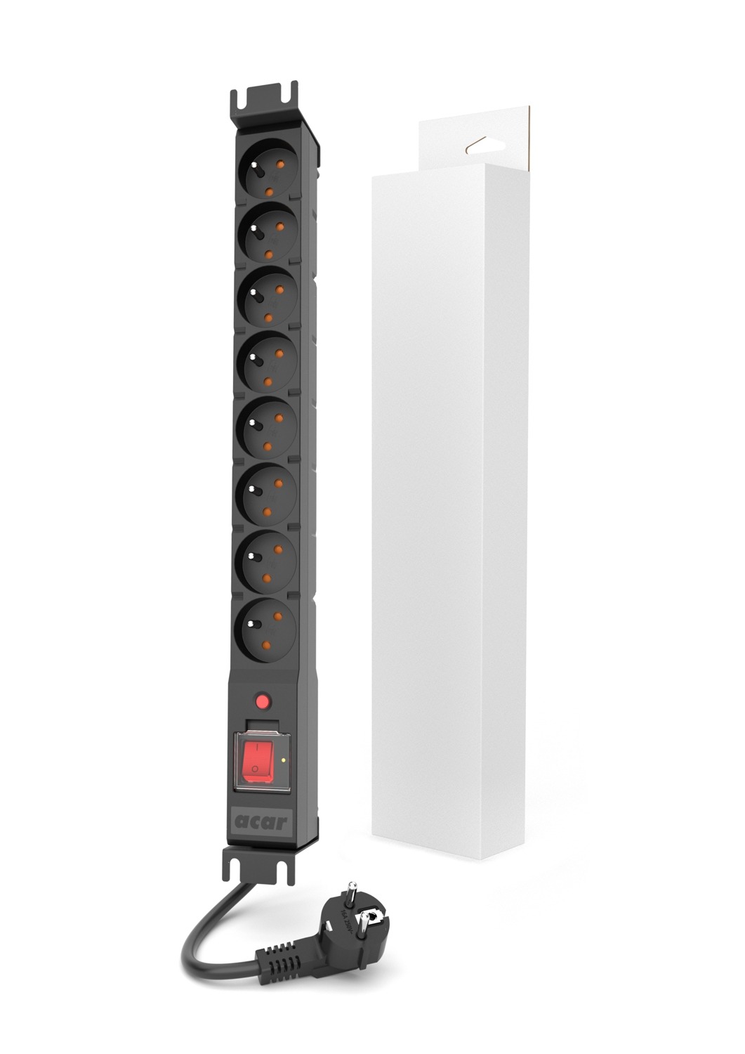Zařízení proti přepětí acar PDU RACK je verze zařízení rodiny acar PDU s profesionálním aplikačním profilem, určená pro instalaci do 19" racku. Zařízení velikosti 1U má osm chráněných napájecích zásuvek s uzemněním, které ve většině případů postačují k napájení všech přijímačů instalovaných v 19" racku. Využívá zesílený síťový vypínač, odolný proti velkým proudovým rázům vznikajícím např. při zapínání počítačových zdrojů (stacionárních a přenosných zdrojů). Síťový vypínač je vybaven odklápěcím krytem, který zabraňuje náhodnému vypnutí. Vestavěný odrušovací filtr výrazně zvyšuje bezpečnost připojených přijímačů a automatická pojistka umožňuje obnovení provozu systému v krátké době. Zařízení má také indikátor správné činnosti ochranného systému. Odolný a pevný plášť ze samozhášecího materiálu splňuje všechny požadavky na přístroje pro profesionální použití.Přepěťová ochrana varistorem značky TDK.