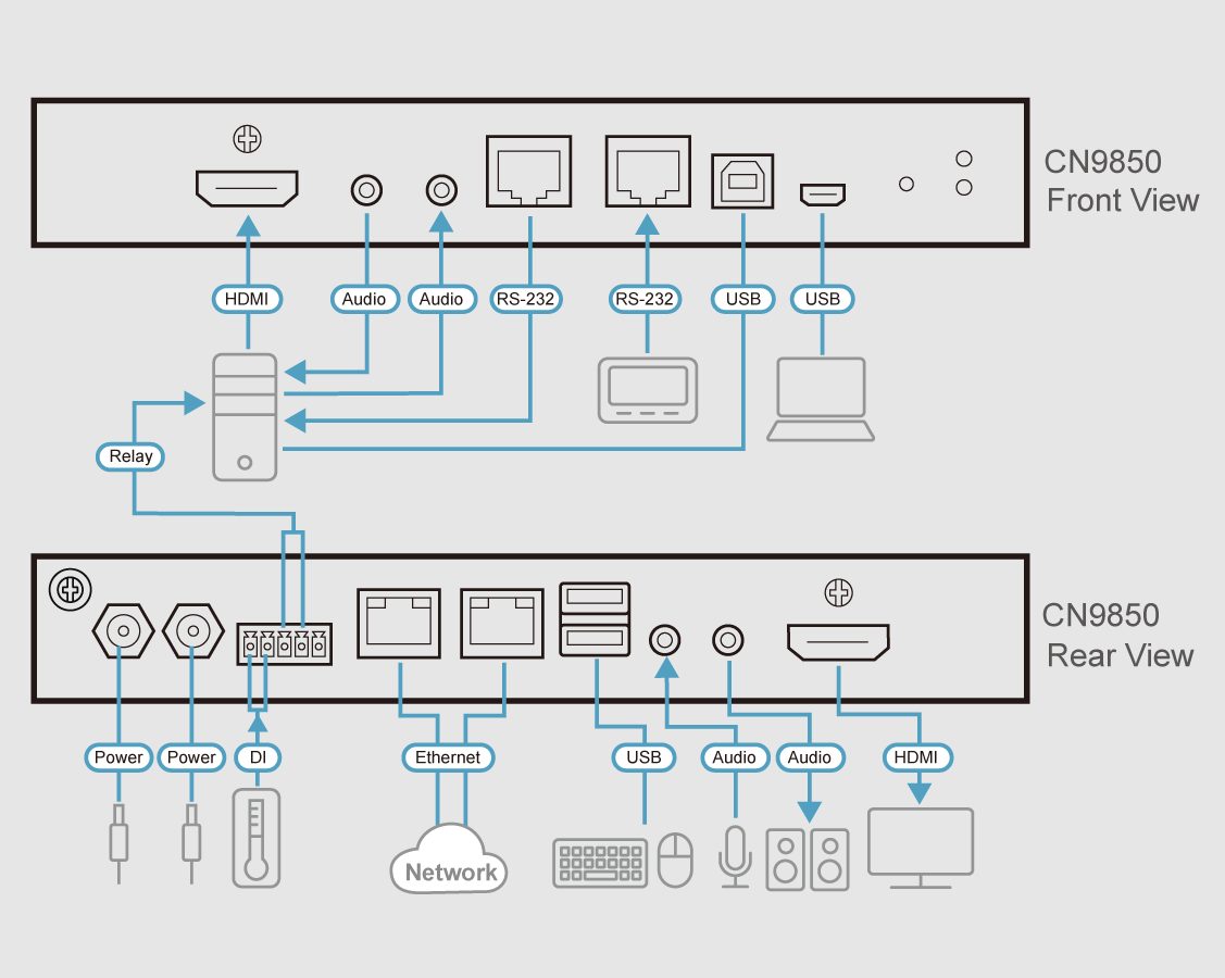 Přepínač CN9850 KVM over IP umožňuje vzdálený přístup k videu, zvuku a virtuálním médiím z počítače nebo pracovní stanice a nabízí video s vysokým rozlišením HDMI s rozlišením až 4K DCI (4096 x 2160) při 30 Hz na obou místních místech. a vzdálené konzole. CN9850, postavený s pokročilým grafickým procesorem FPGA, nabízí lepší kvalitu obrazu a videa pro zlepšení uživatelského zážitku a zároveň splňuje standardy RS-232 pro sériové ovládání.