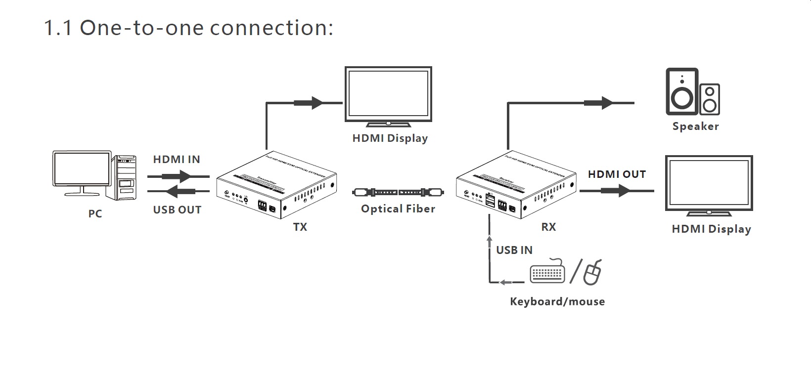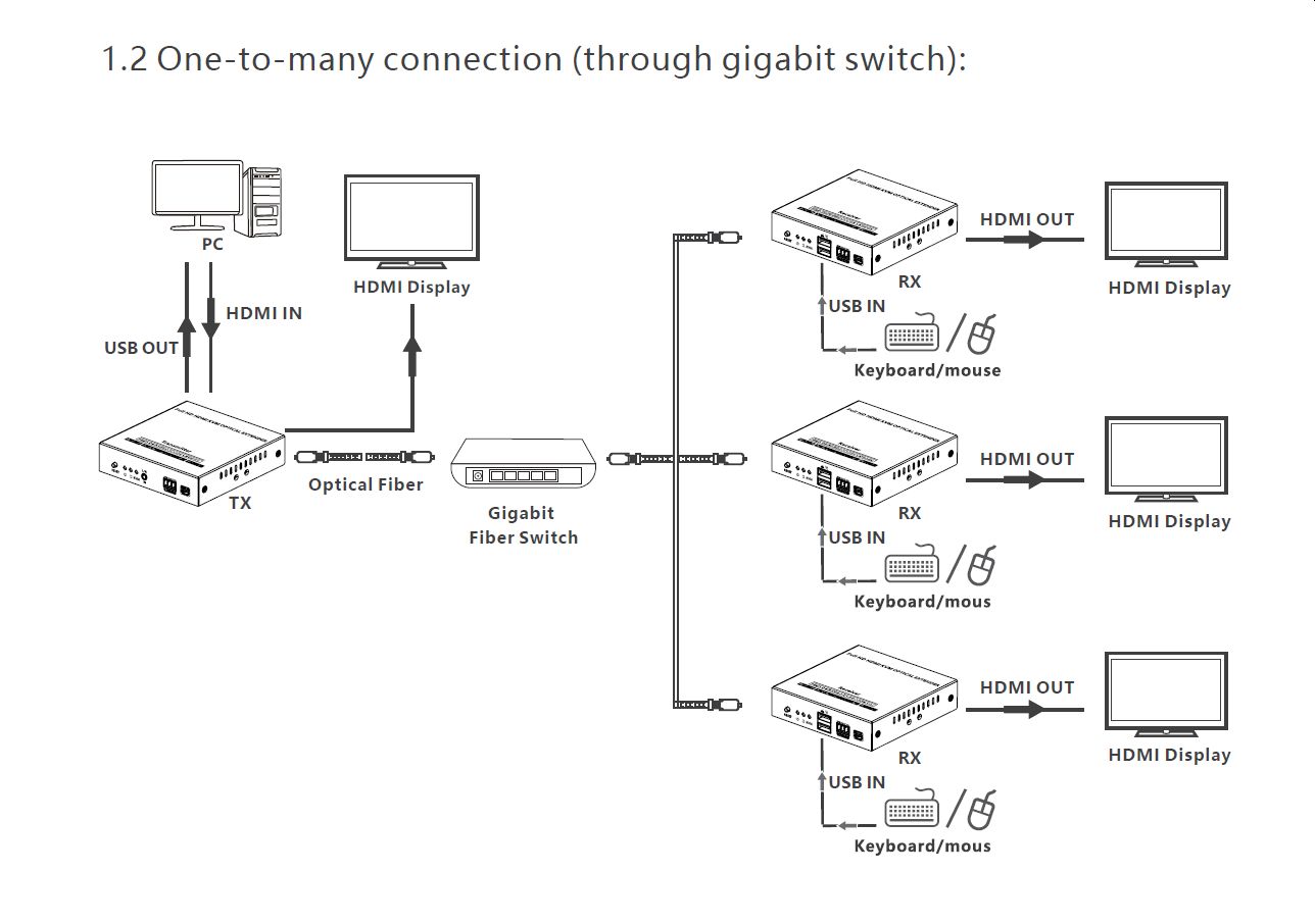 - Zařízení umožňuje po optickém vlákně ovládat počítač nebo server na velkou vzdálenost, umožňuje přenést HDMI video signál a připojit USB klávesnici a myš na velkou vzdálenost.