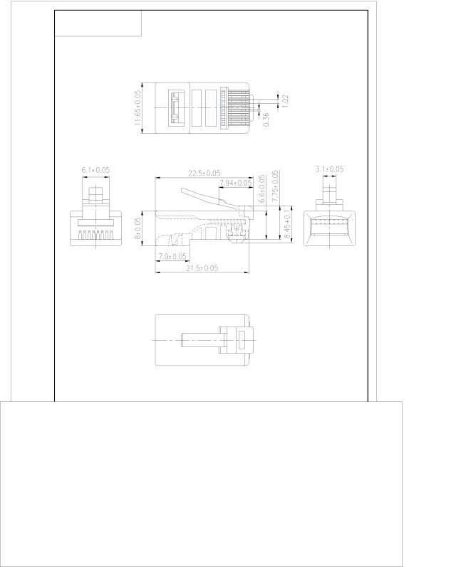 Konektor RJ45 nestíněný CAT6 krimpovací pro kulaté kabely, RJ45 8P8C 8 pinů, nestíněný konektor, vhodné na lanko a drát Cat6, 2 x prong, balení 50ks