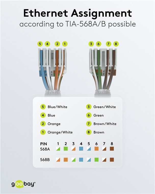 - Konektor RJ45 je barevně označený TIA-568A/B