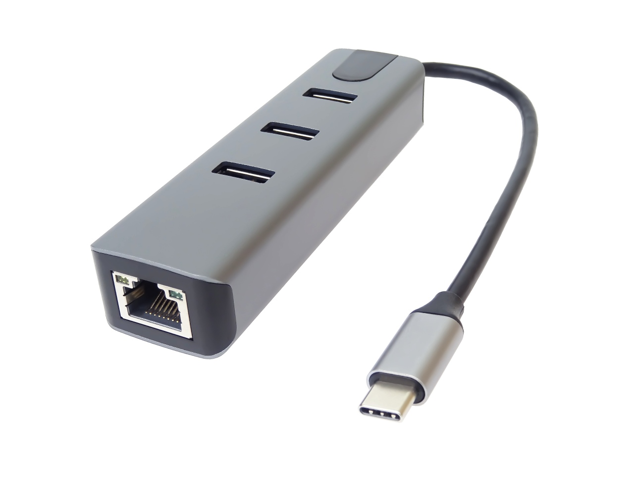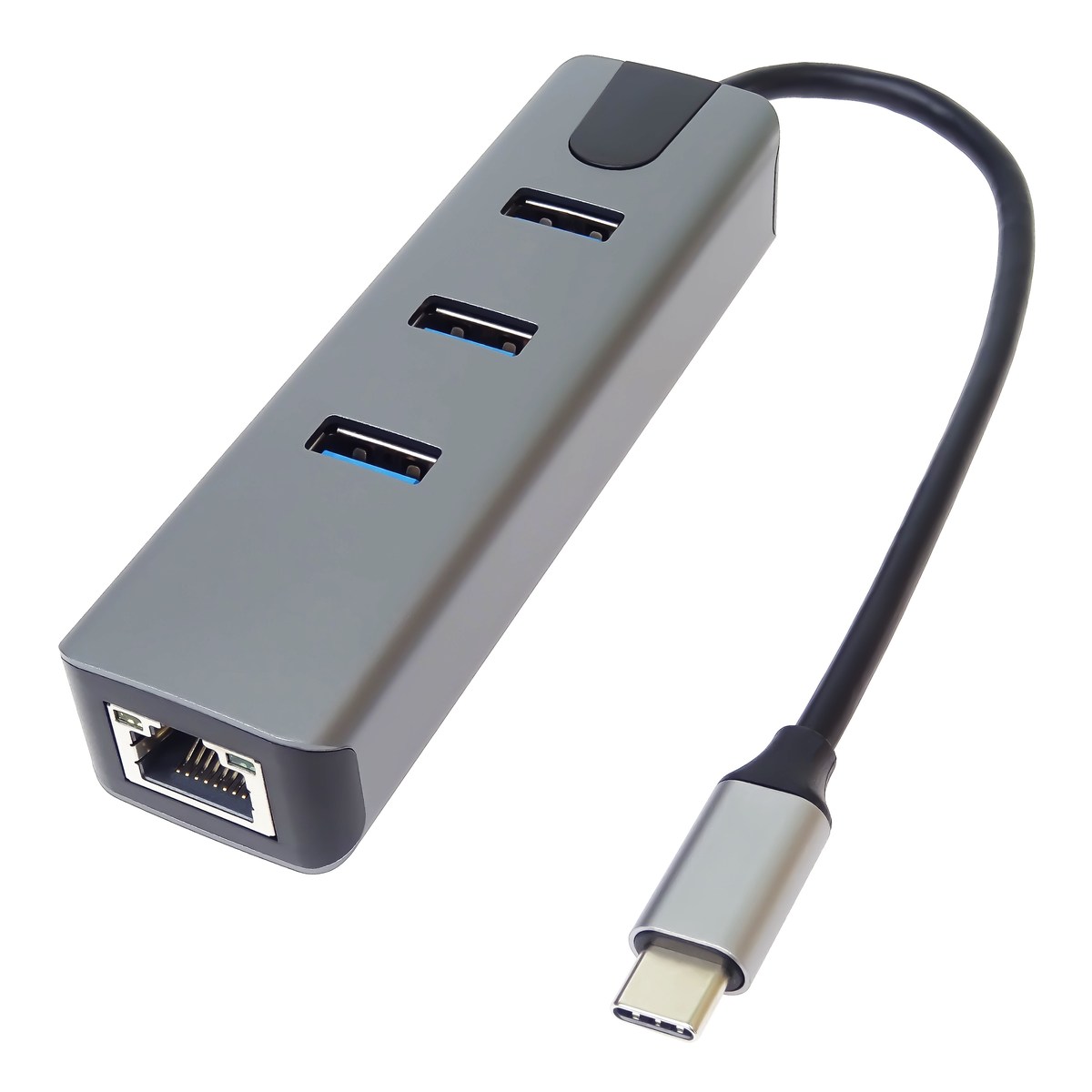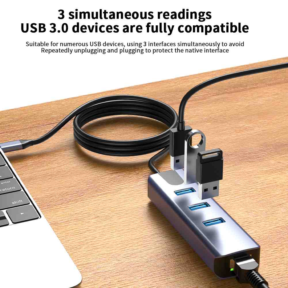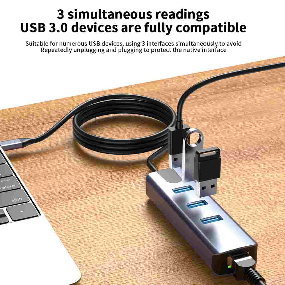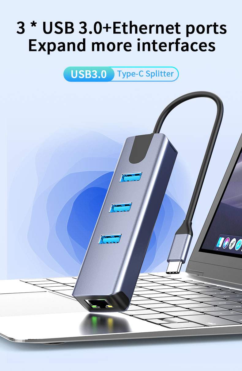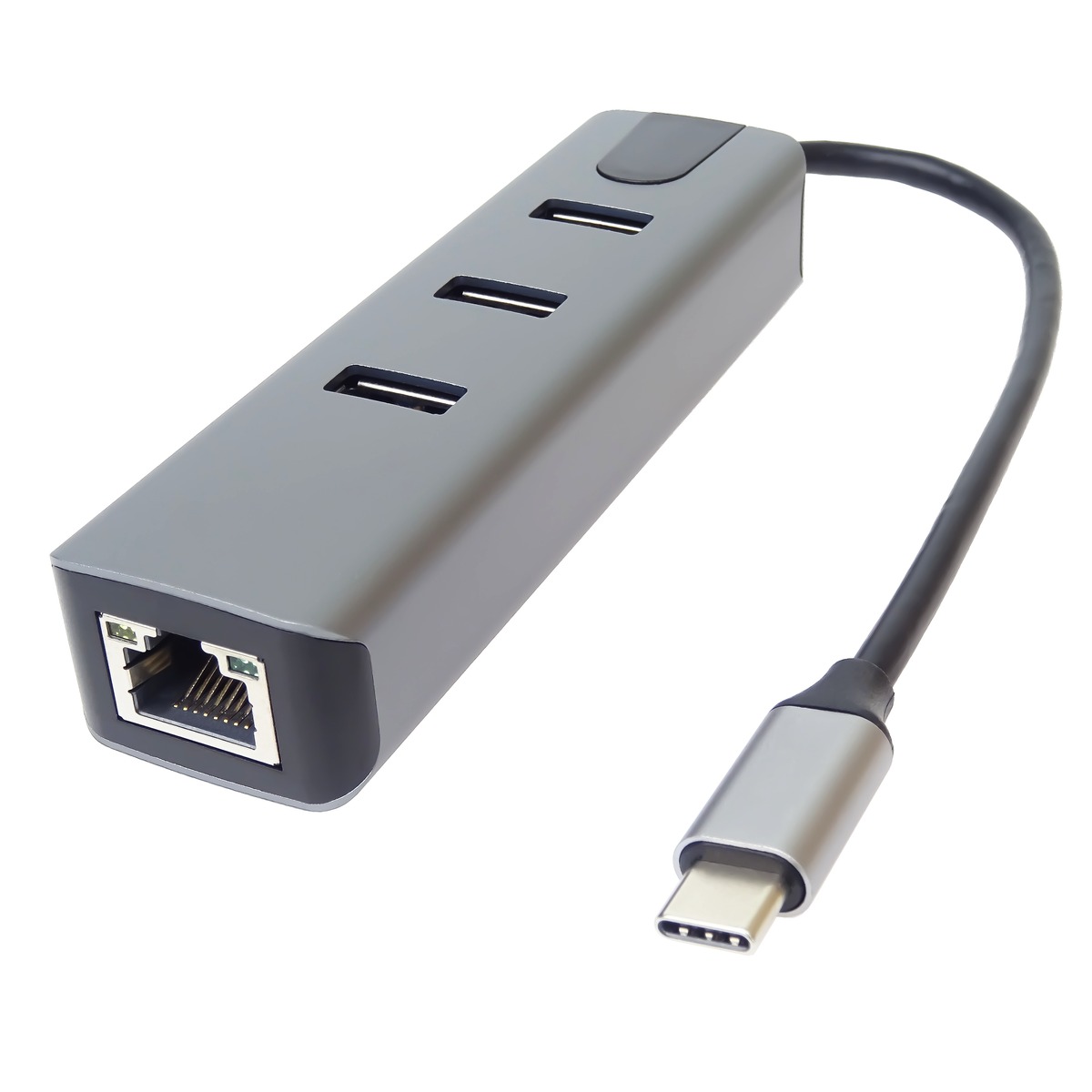 Převodník, který umožní připojit Váš počítač s portem USB typu C do internetu nebo k lokální síti pomocí kabelu s RJ45 (Gigabit) a navíc umožňuje zapojit tři USB3.2 (5 Gbps) periferie jako USB disk, tiskárnu, klávesnici a myš