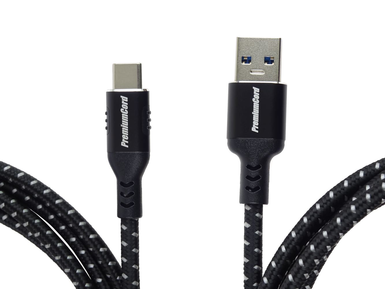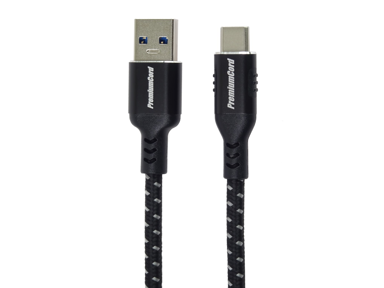 PremiumCord kabel USB-C - USB 3.0 A (USB 3.2 generation 1, 3A, 5Gbit/s) 3m bavlněný oplet a kovové hliníkové konektory