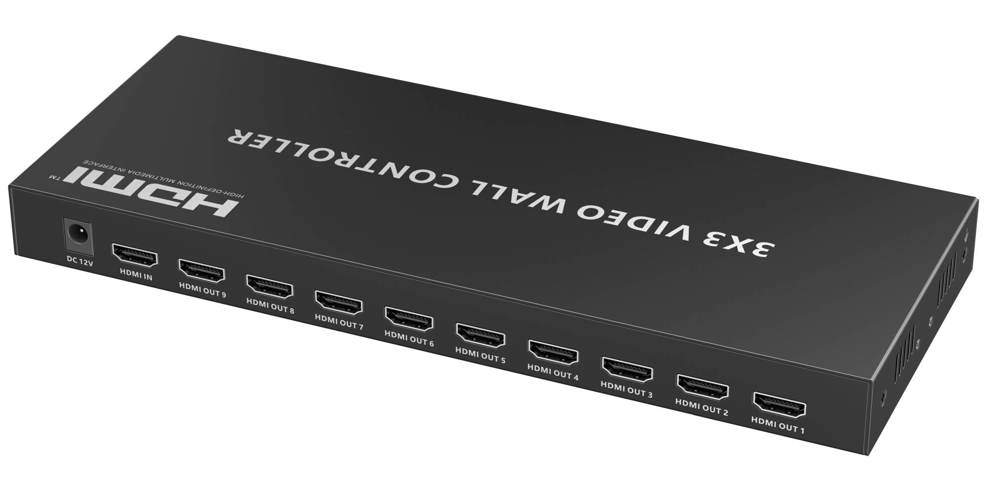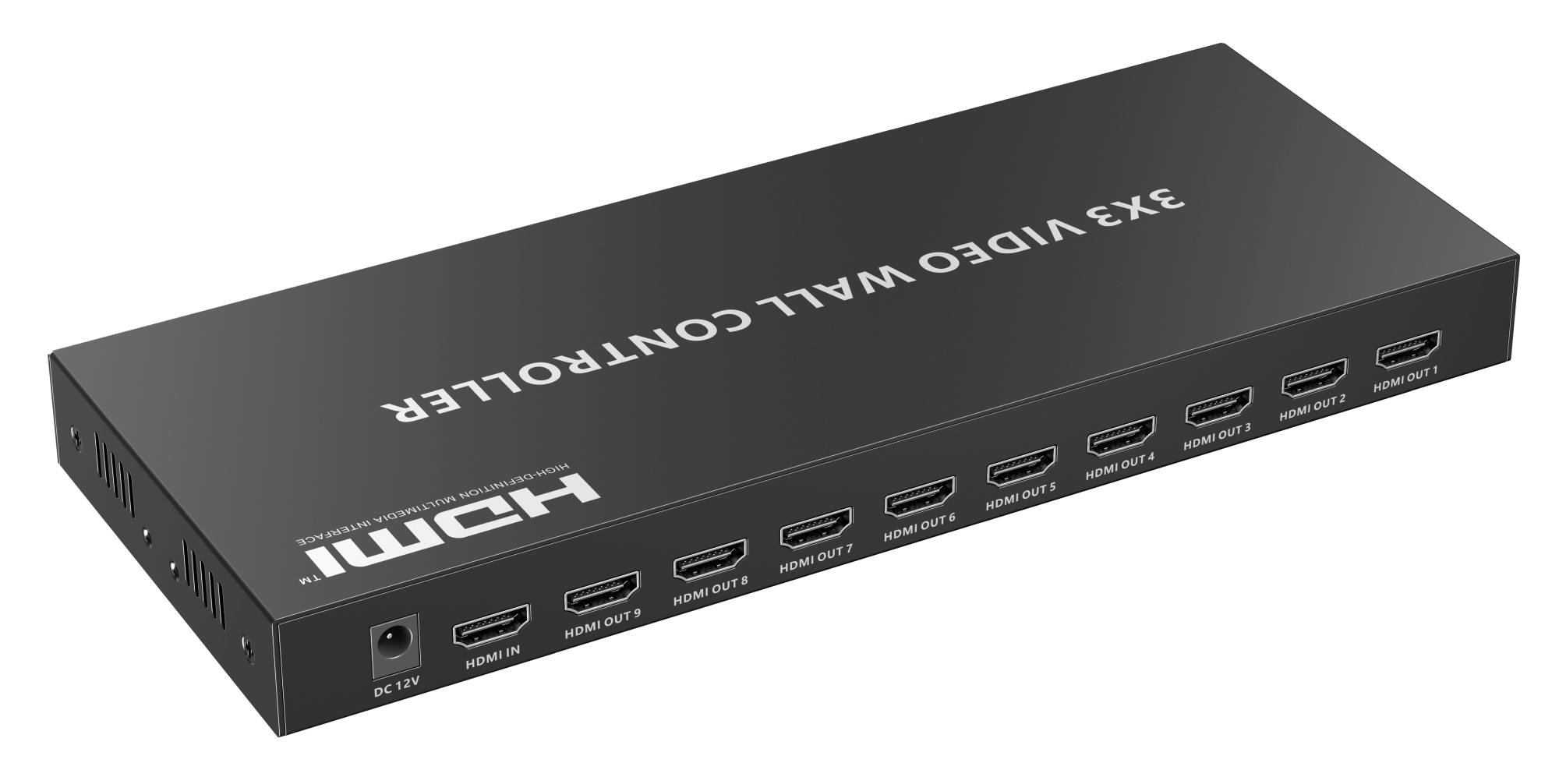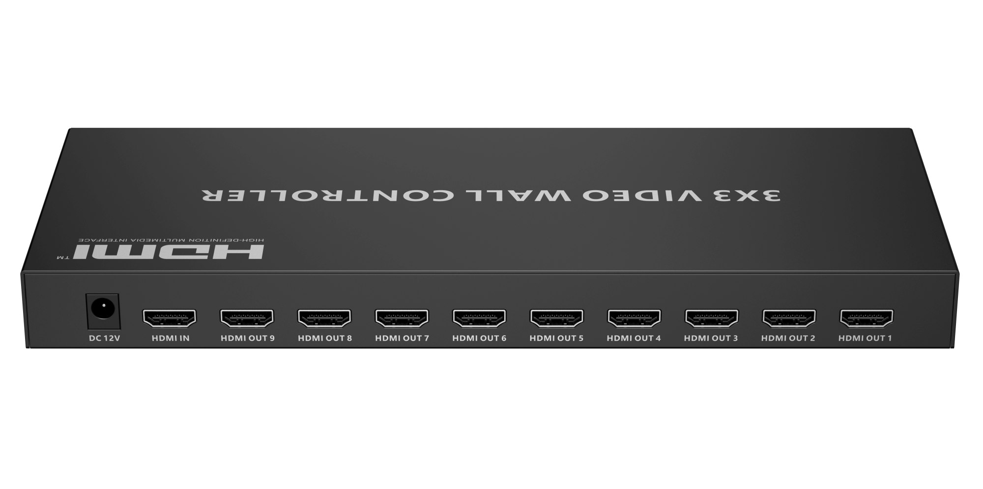 - Video Wall controller umožňuje zobrazit jeden HDMI obraz na až devět výstupů HDMI, na devět zobrazovačů nebo devět monitorů, které skládají jeden velký obraz