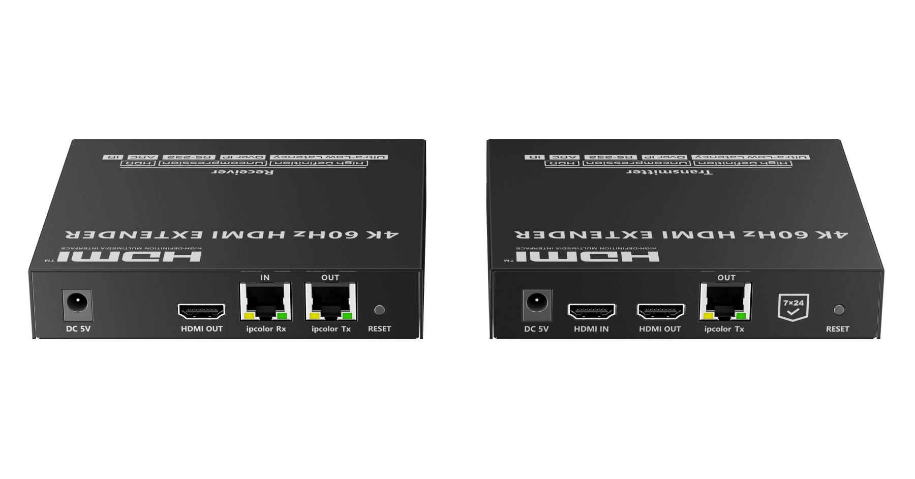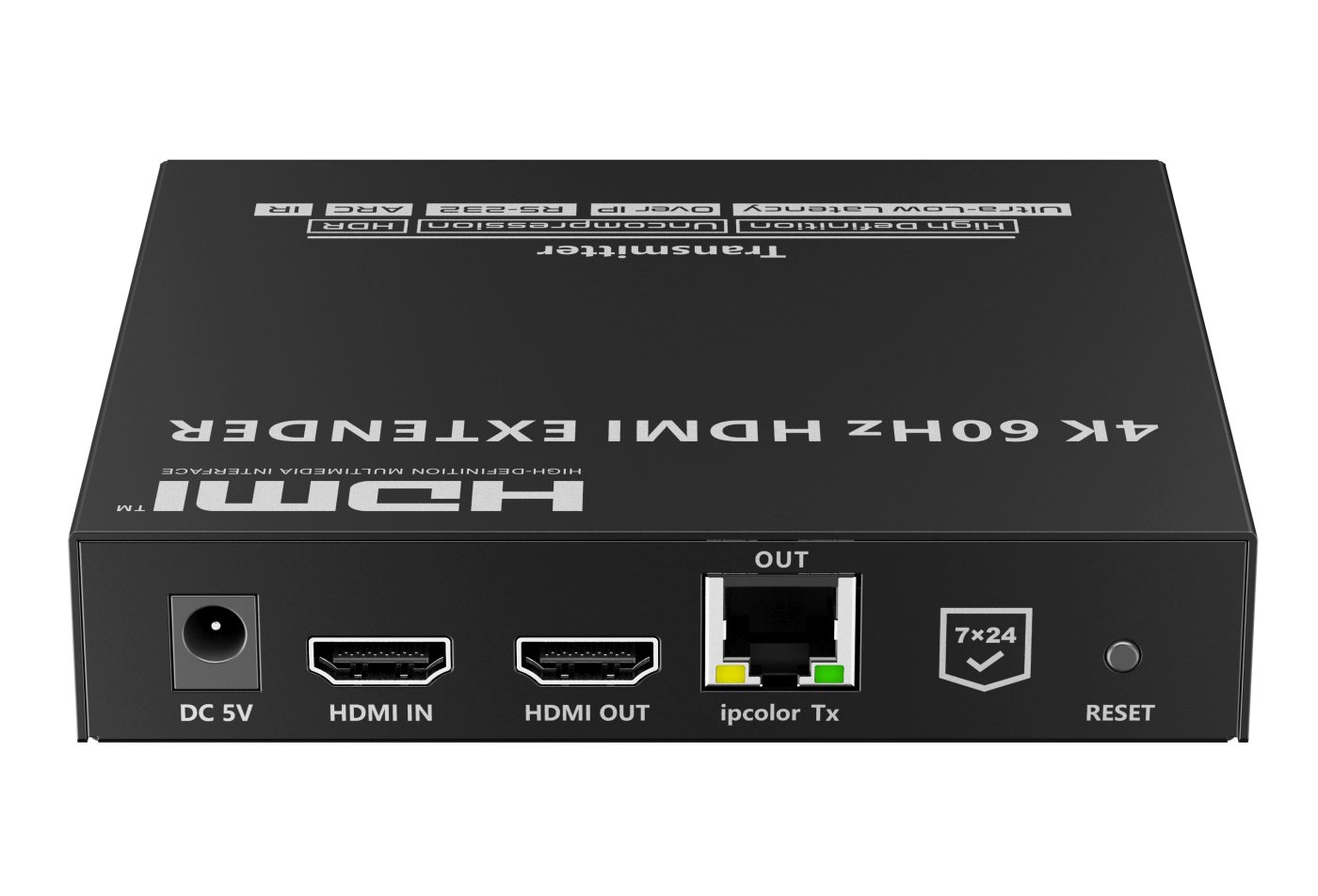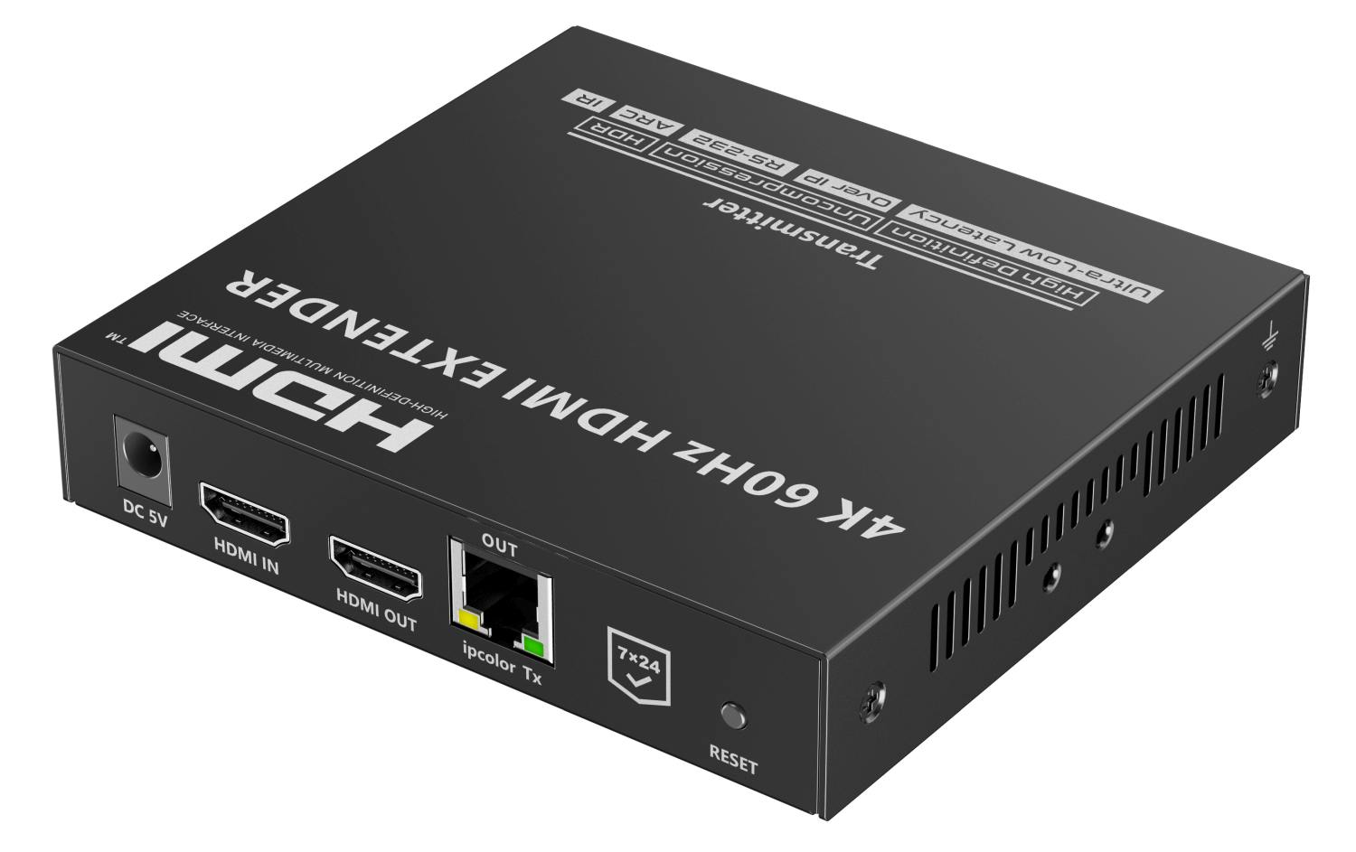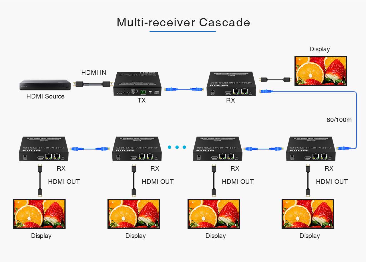 Zařízení umožňuje po jednom síťovém kabelu nebo prostřednictvím 10G LAN sítě přenést nekompreovaný 4K@60Hz HDMI signál s extrémně malým zpožděním a ve špičkové kvalitě až na 80m a současně IR signály, RS232 a digitální zvuk.