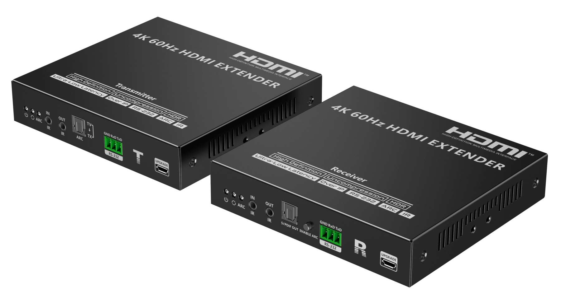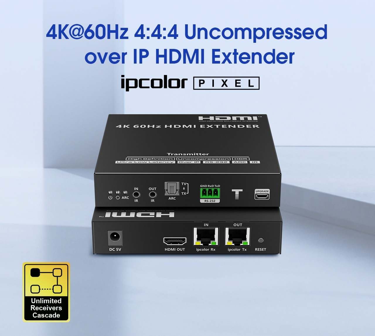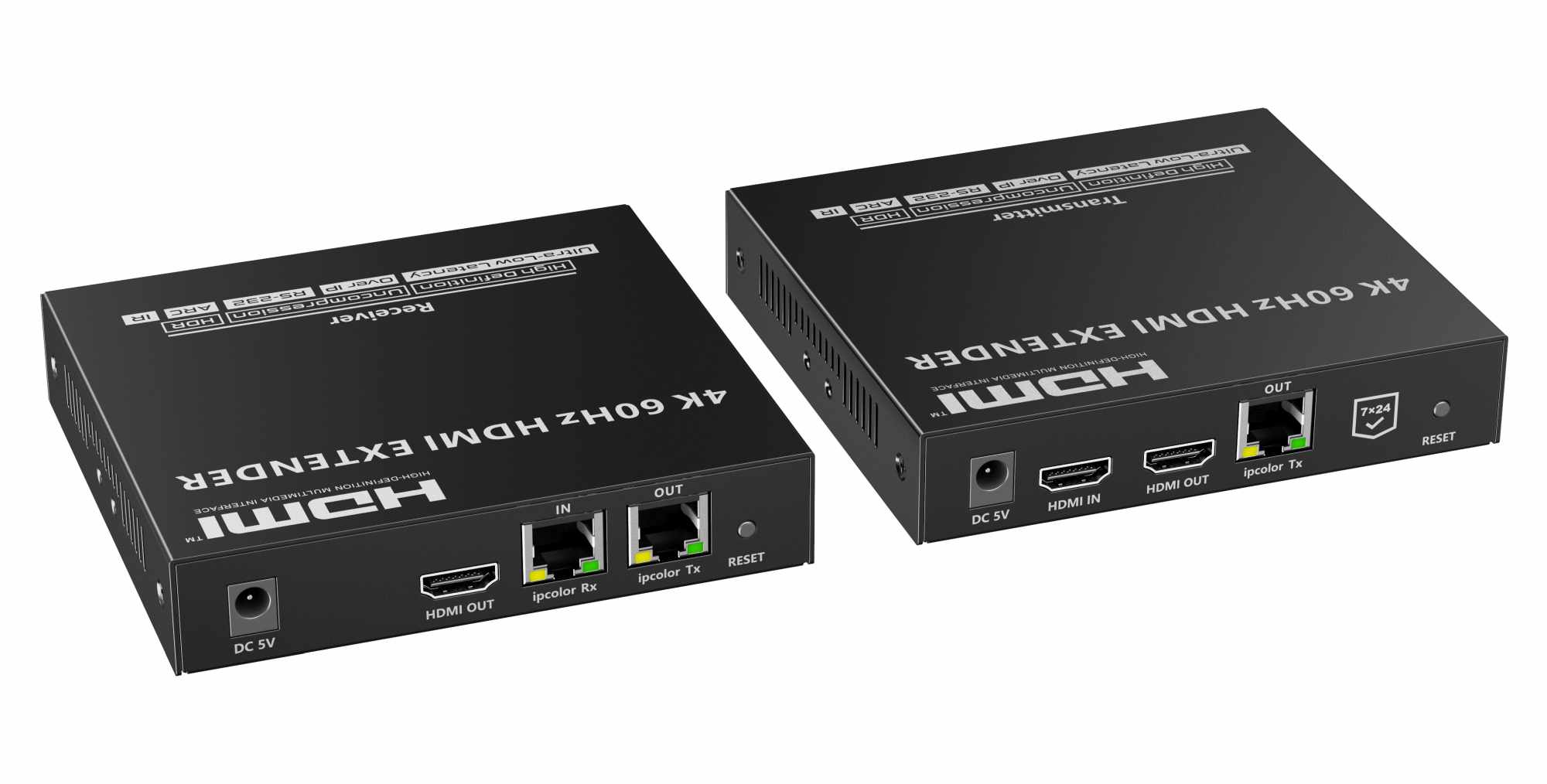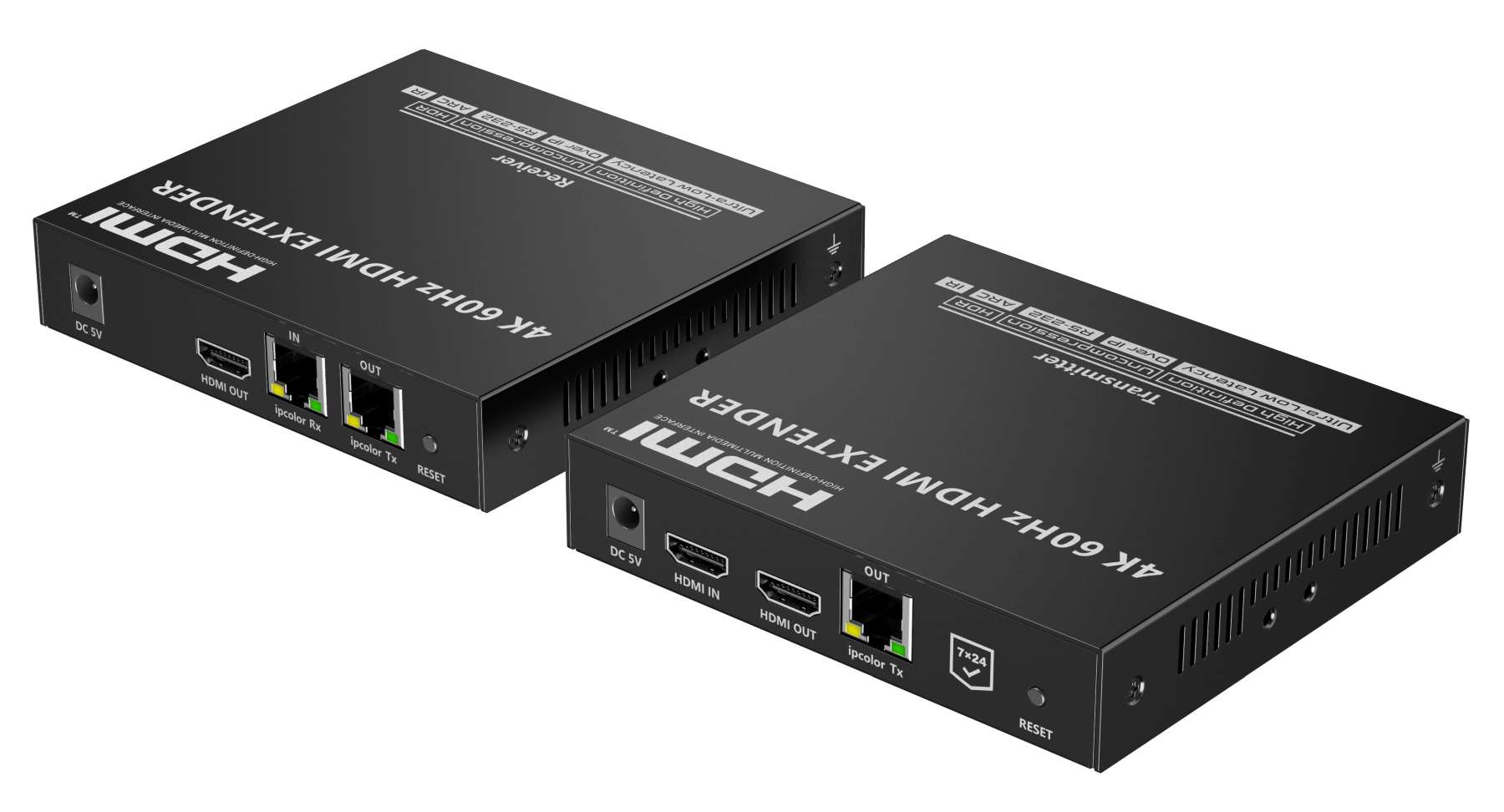Zařízení umožňuje po jednom síťovém kabelu nebo prostřednictvím 10G LAN sítě přenést nekompreovaný 4K@60Hz HDMI signál s extrémně malým zpožděním a ve špičkové kvalitě až na 80m a současně IR signály, RS232 a digitální zvuk.