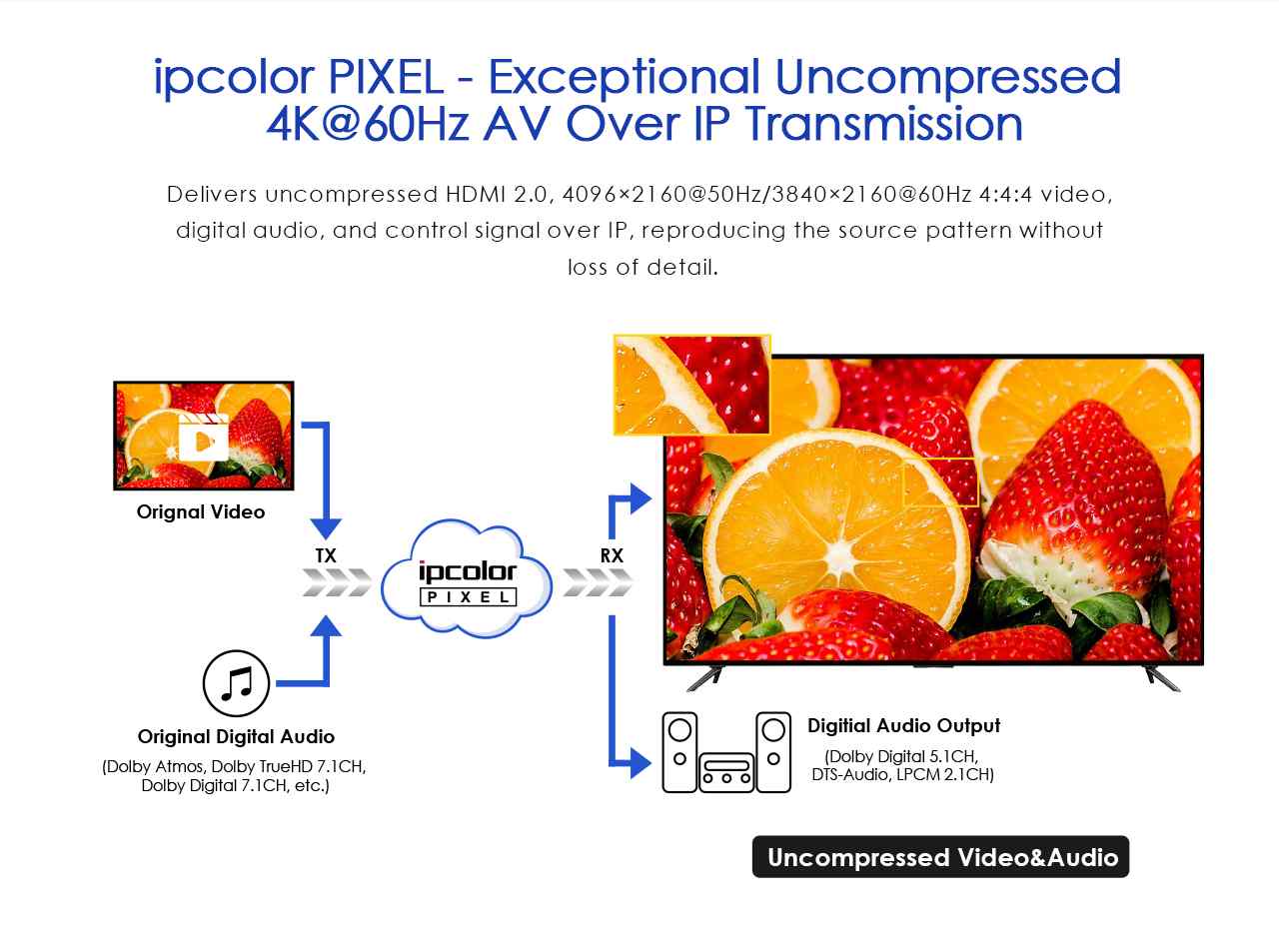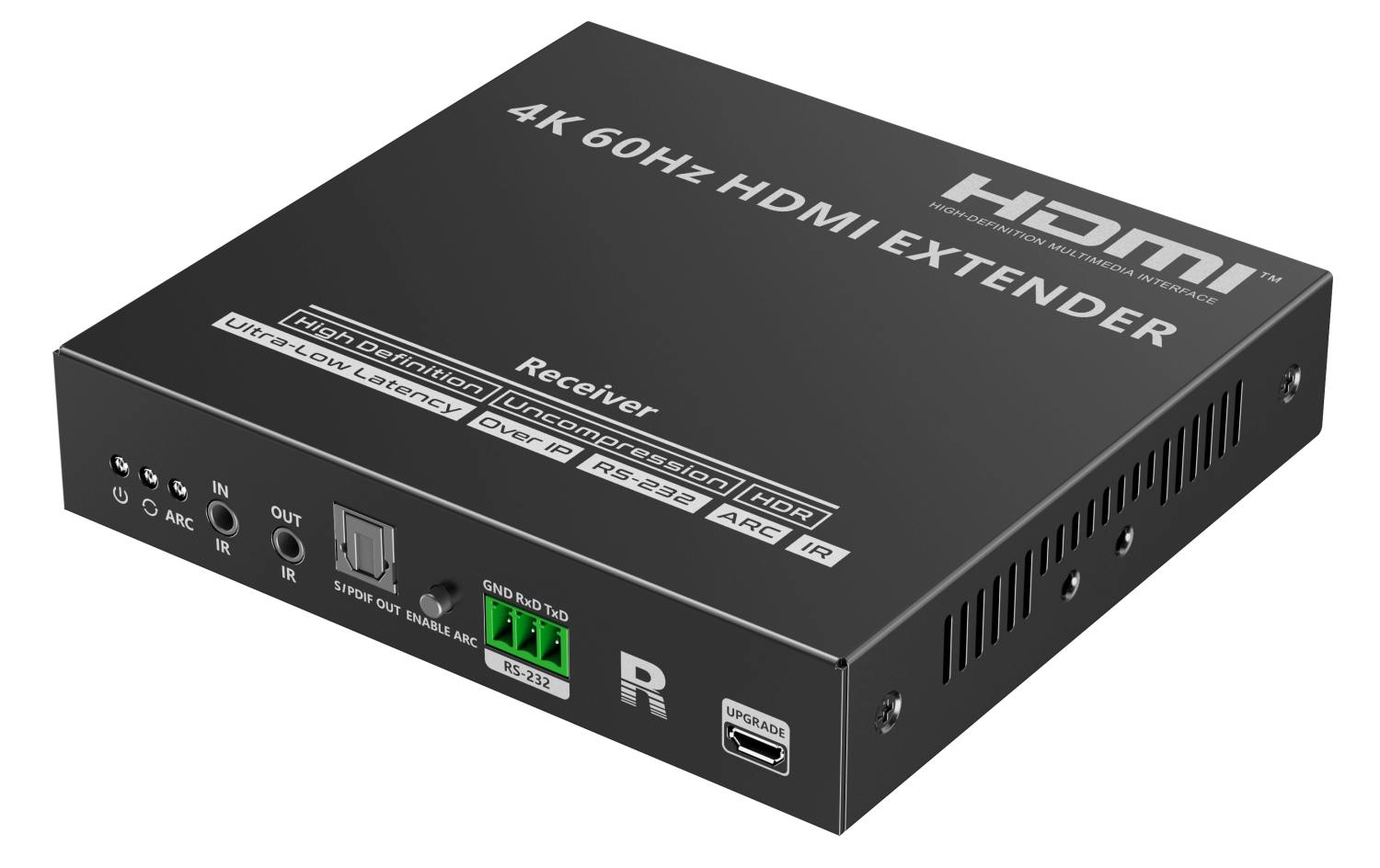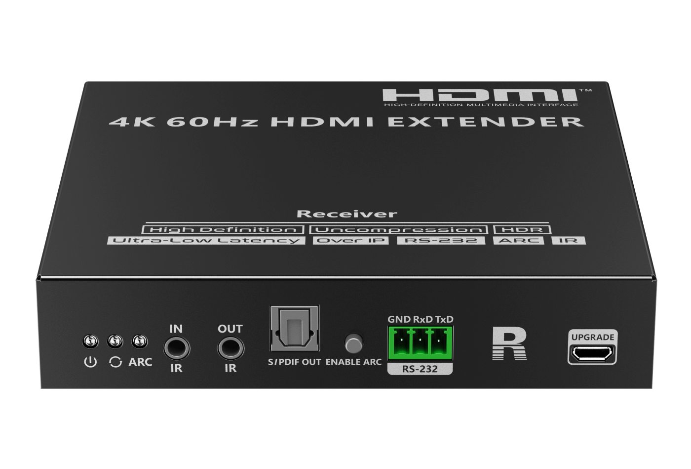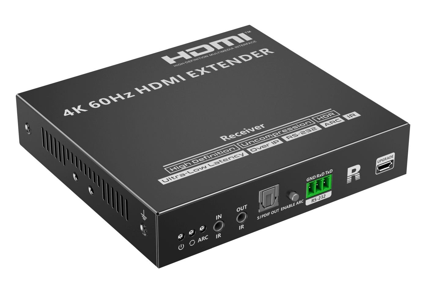 Zařízení umožňuje po jednom síťovém kabelu nebo prostřednictvím 10G LAN sítě přenést nekompreovaný 4K@60Hz HDMI signál s extrémně malým zpožděním a ve špičkové kvalitě až na 80m a současně IR signály, RS232 a digitální zvuk.