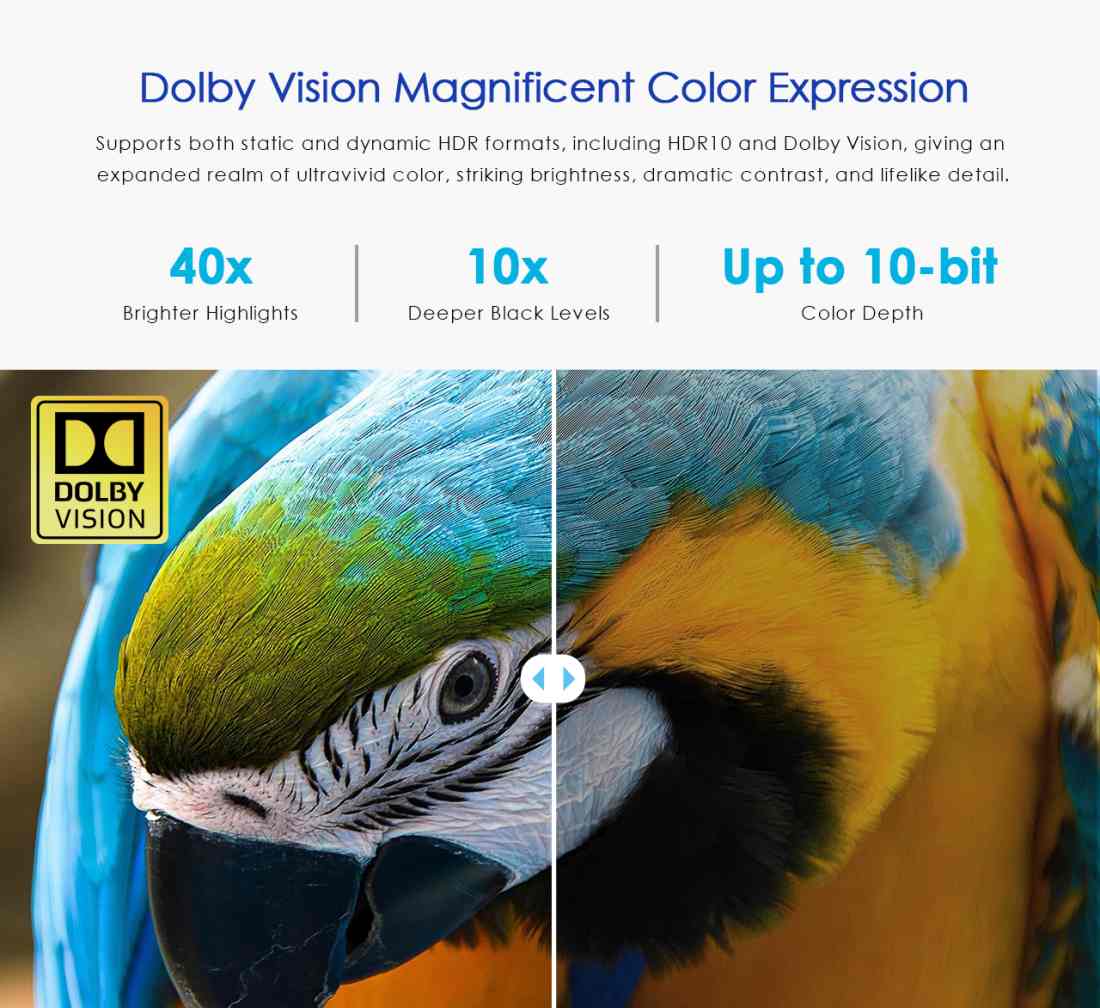 - Podporuje audio:LPCM7.1CH/DTS-HD/DTS -Audio/Dolby Digital plus/Dolby True HD7.1CH/Dolby Digital 7.1CH/Dolby Atmos