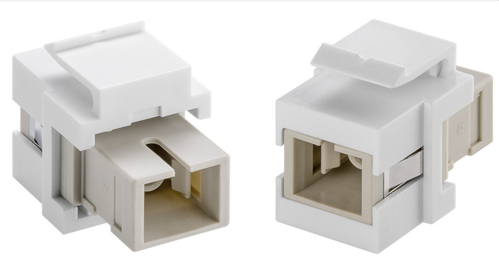 - Optická zásuvka pro instalaci do propojovacích Keystone zásuvek, panelů a krytů
