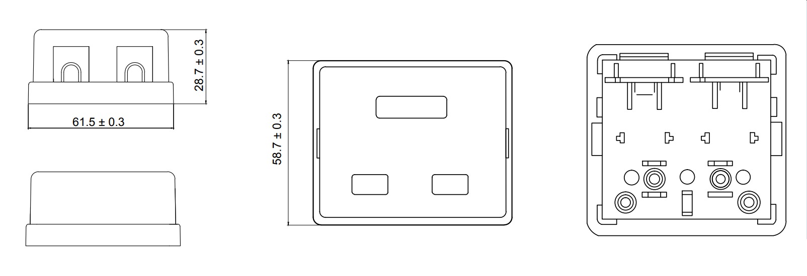 - Prázdné pouzdro pro vybavení např. zásuvky RJ45 a pro připojení síťových kabelů