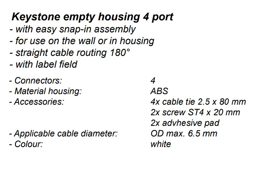 - Distributor pro snadnou montáž 4x Keystone modulu (není součástí dodávky)