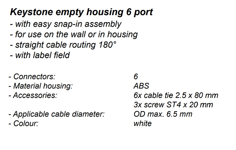 - Distributor pro snadnou montáž 6x Keystone modulu (není součástí dodávky)