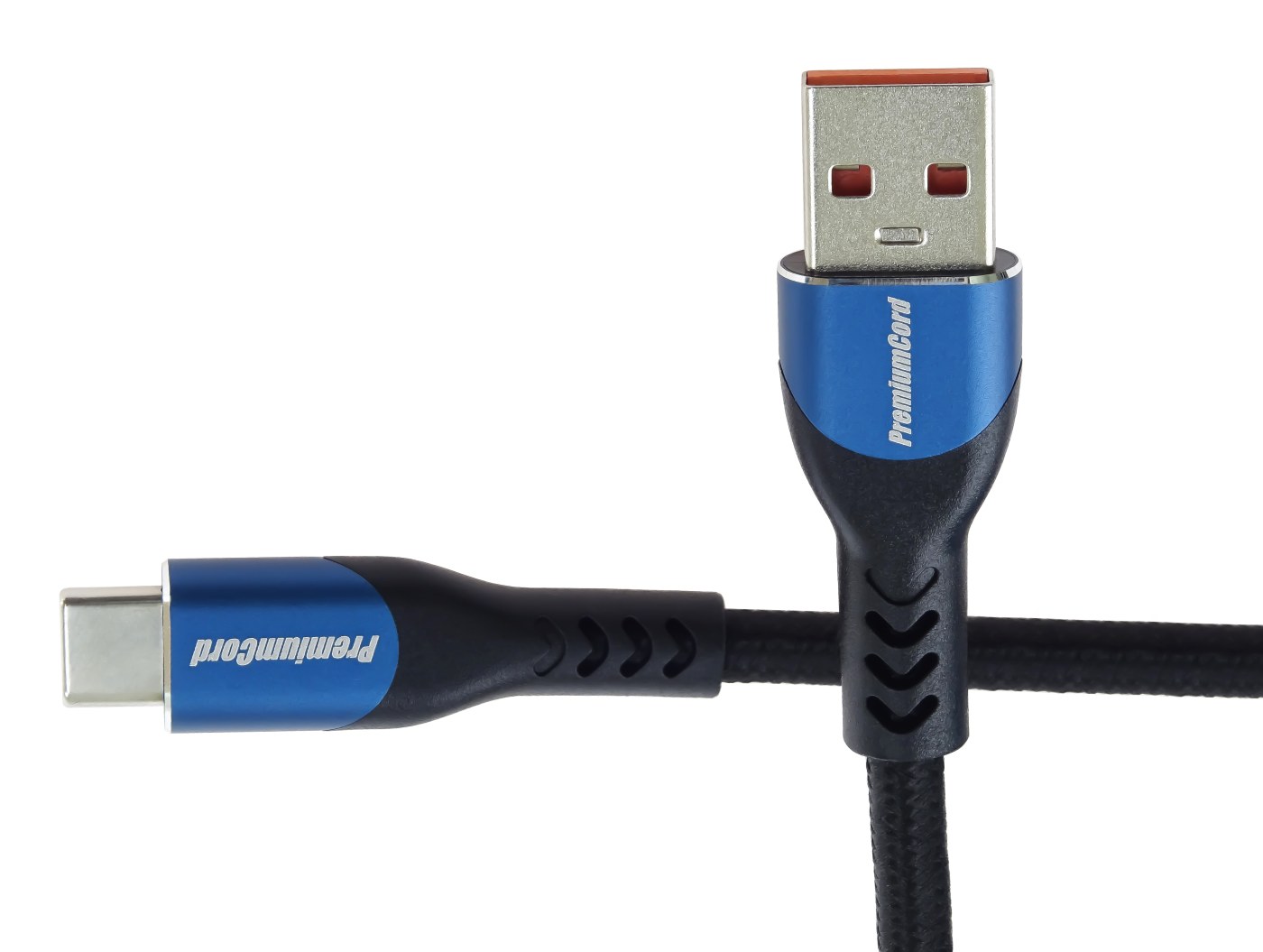 PremiumCord Super fast charging 5A kabel USB-C - USB 2.0 A bavlněný oplet 1,5m