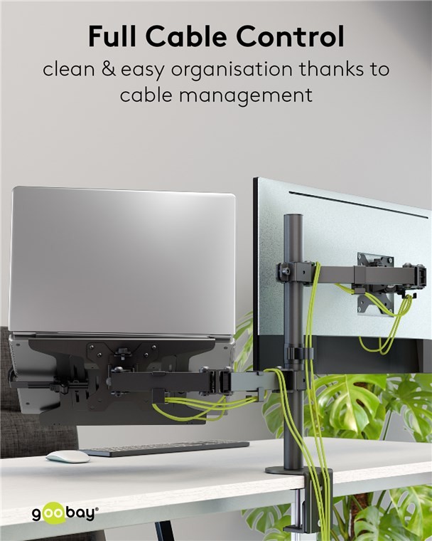 - S ramenem monitoru a přídavnou policí je držák super flexibilní – jako stojan na notebook nebo přihrádka na projektor. Další výhoda: Kompaktní stojan vytváří další prostor na stole a zajišťuje čistý vzhled.