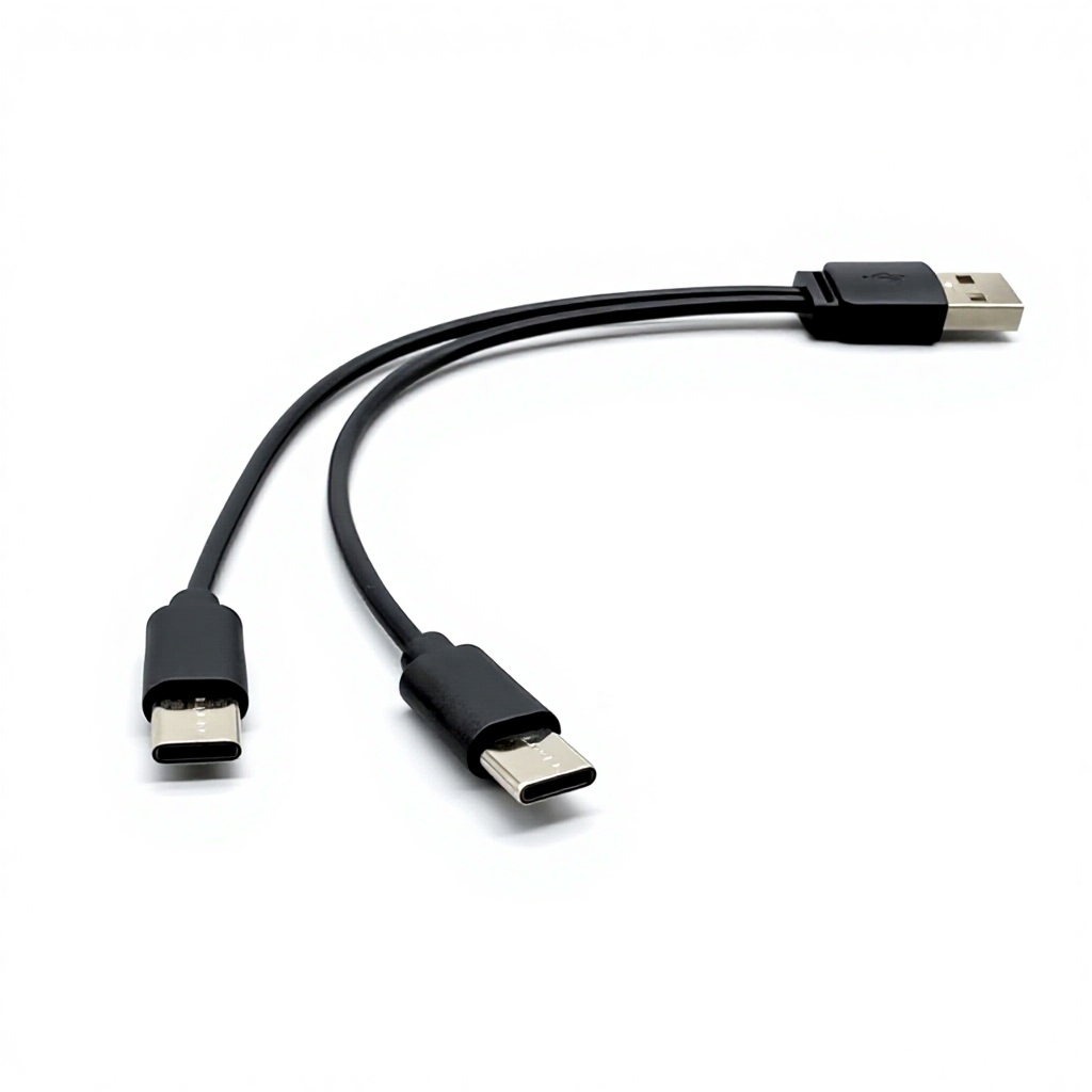 - Y kabel slouží pro nabíjení dvou USB-C mobilních telefonů nebo USB zařízení z jednoho USB portu, obě zařízení mohou být současně nabíjena nebo napájena.