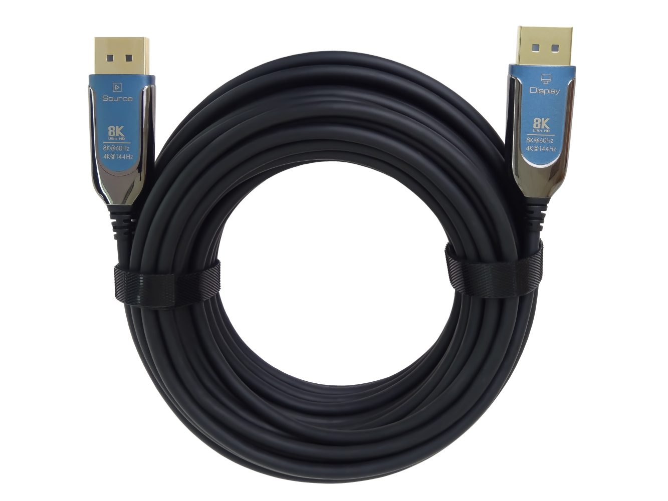 Optický DisplayPort kabel slouží pro spojení dvou audio/video zařízení přes moderní DisplayPort rozhraní, jako je např. HD-DVD/BluRay přehrávač a LCD/Plazma televizor. kabel přenáší digitální zvuk i obraz a podporuje digitání ochranu obsahu HDCP.