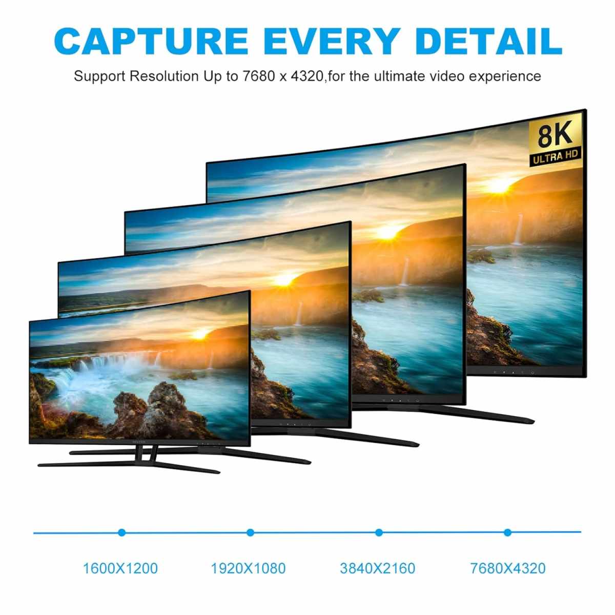 Kabel je vybaven standardem DisplayPort 1.4 a poskytuje obzvláště vysokou šířku pásma, ideální pro plynulé přehrávání obrazu bez trhání obrazovky nebo trhání při hraní her a rozlišení ostré jako břitva s rozlišením až 8K nebo 4k.