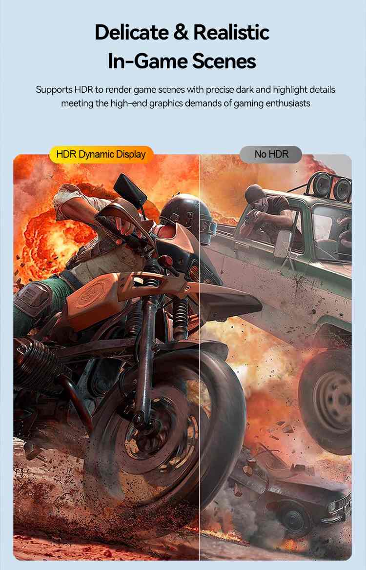 - Kabel podporuje FreeSync a G-Sync, Dynamic HDR a také 32 audio kanálů a mnoho oblíbených audio formátů, např. DTS-HD Master Audio