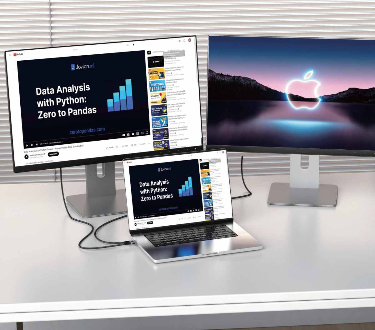 - Funguje s novými zařízeními s USB-C podporujícími DisplayPort Alternate modes