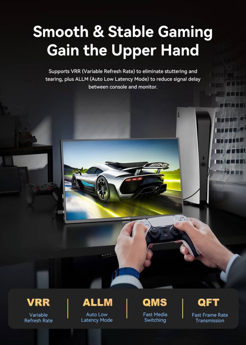 - Quick Media Switching(QMS),Auto Low Latency Mode(ALLM), Quick Frame Transport(QFT)