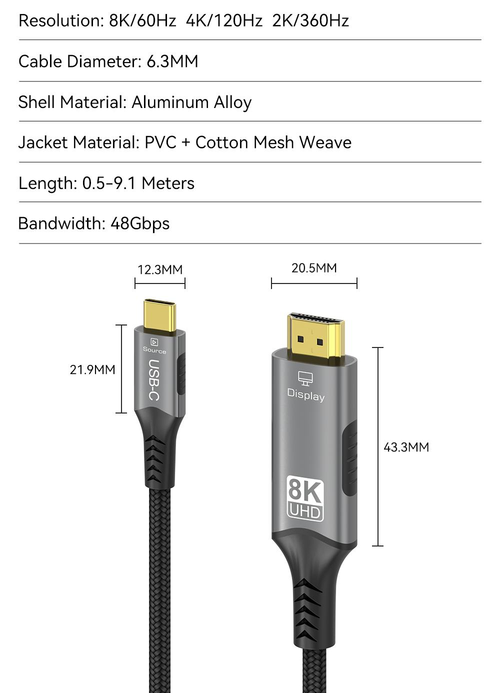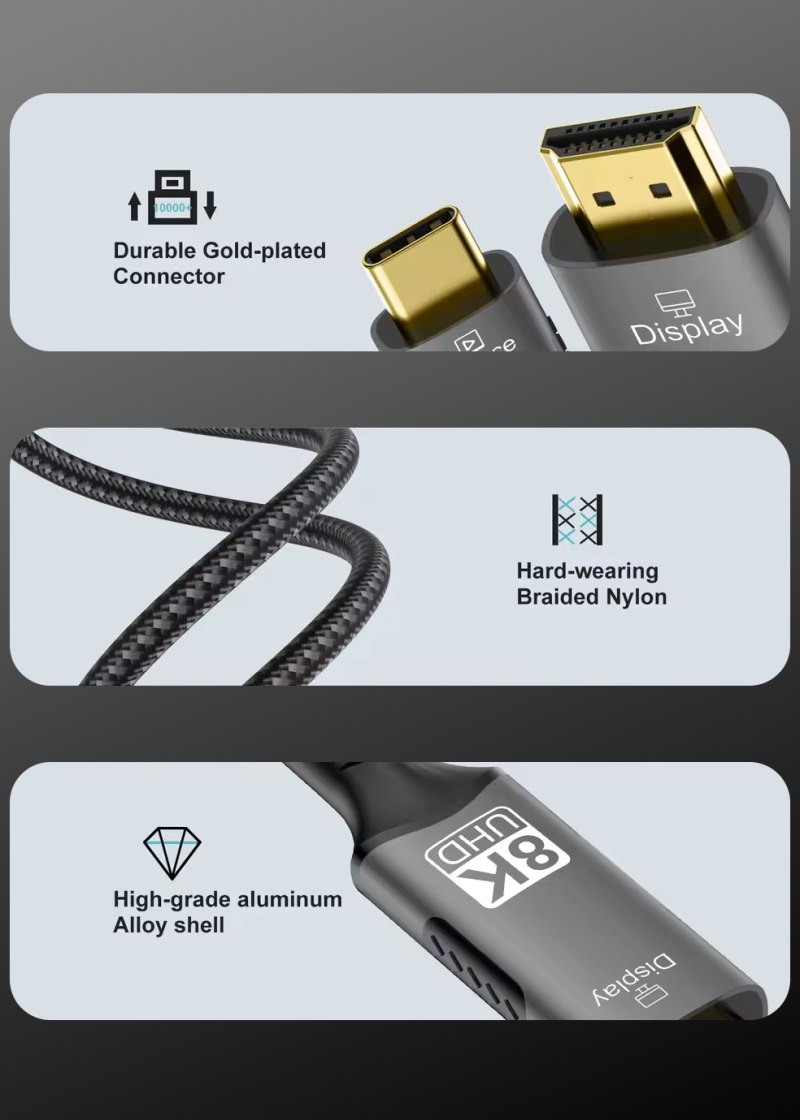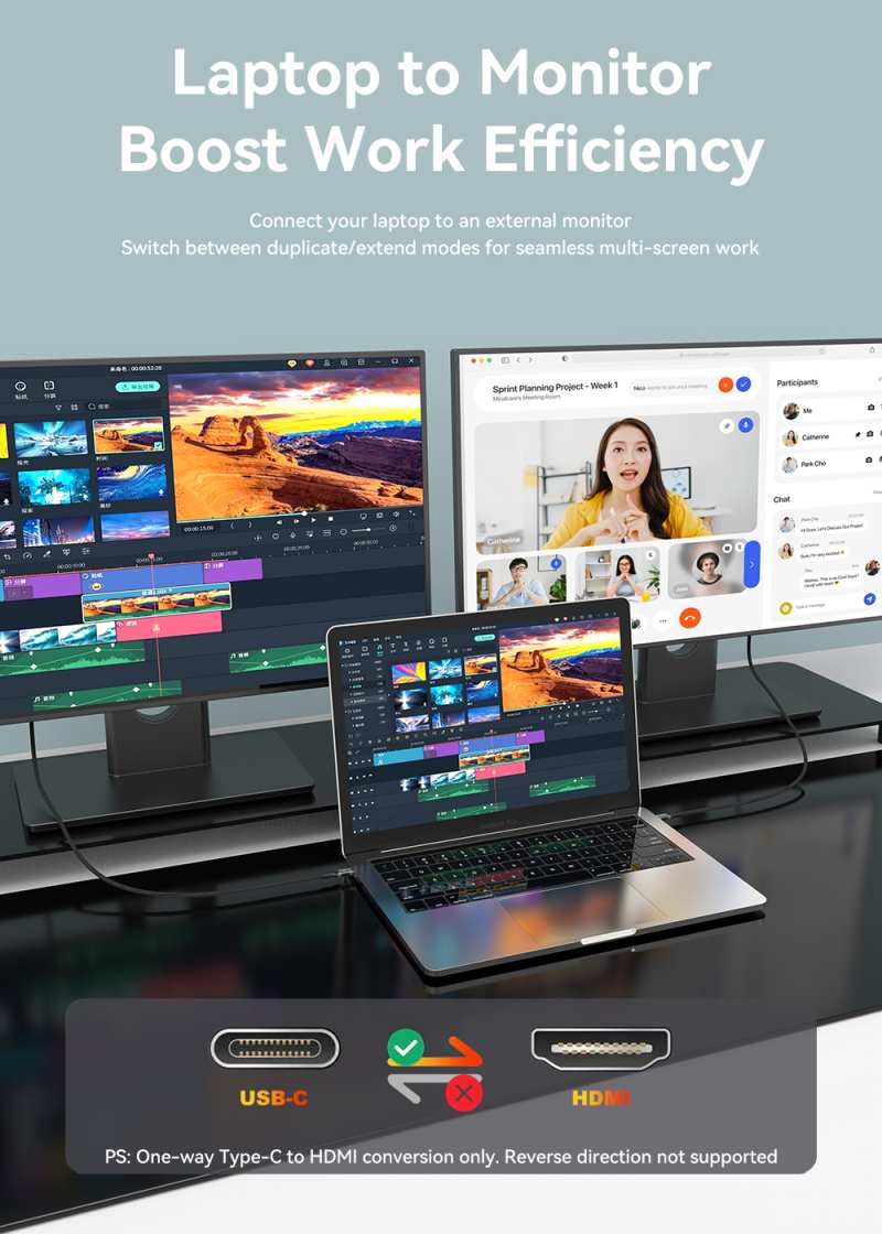 Tento kabel umožňuje vysoce kvalitní převod videa a zvuku z USB-C na HDMI konektor pro monitor/TV/projektor. Funguje jako externí grafická karta s výstupem HDMI.