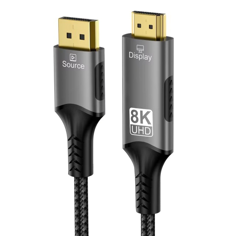 PremiumCord DisplayPort 1.4 na HDMI2.1 kabel pro rozlišení 8K@60Hz,4K@144Hz, kabel umožňuje připojit HDMI monitor, TV a jiný zobrazovač s konektorem HDMI k počítači nebo notebooku s výstupem DP (Displayport) délka:2m
