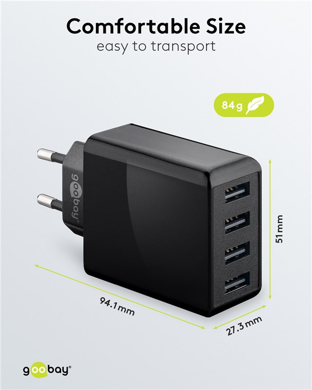 - Kompaktní nabíječka se čtyřmi porty kombinuje výkon čtyř samostatných USB napájecích jednotek – vejde se do každé kapsy nebo tašky a je perfektní doma, v kanceláři i na cestách.