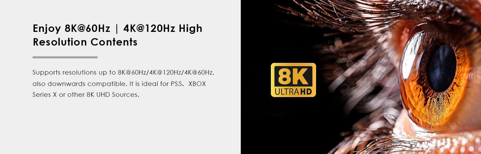 - Rozlišení: 8K@60hz, 4K@120Hz, 1080p