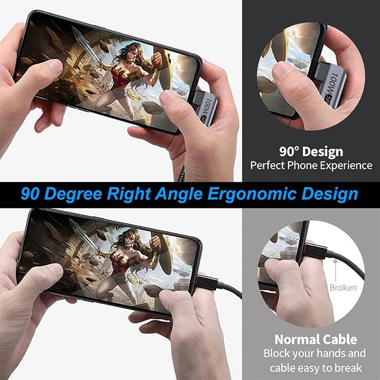 - Kabel je vybavený E-Mark čipem – řídicí elektronikou, která zajišťuje komunikaci připojených zařízení. Lze tak snadněji dosáhnout maximální možné rychlosti přenosu dat a nabíjení.