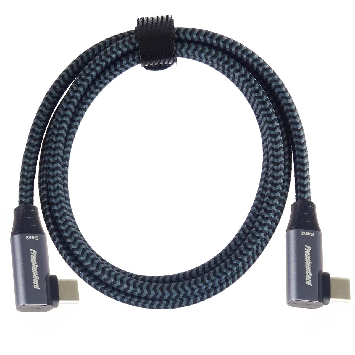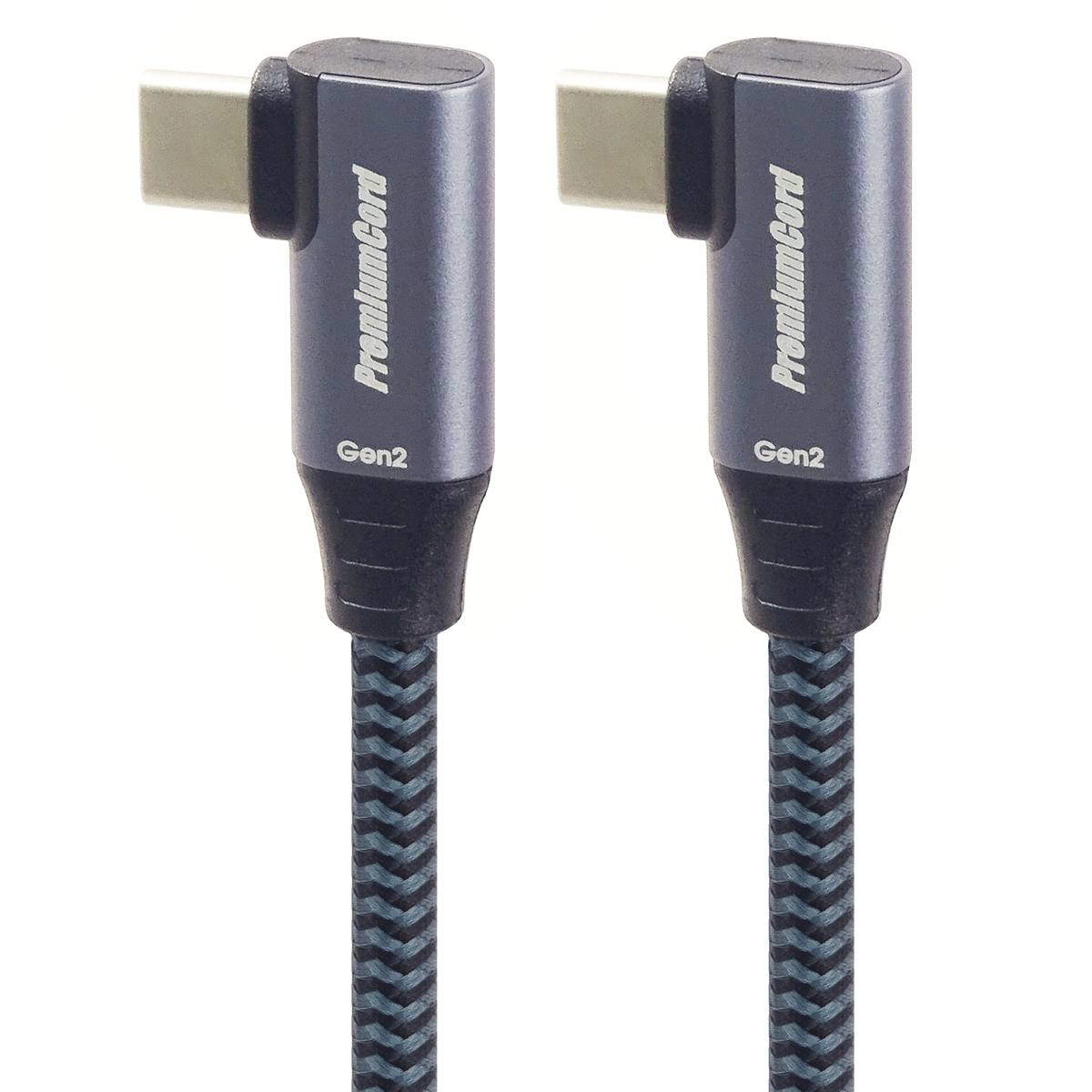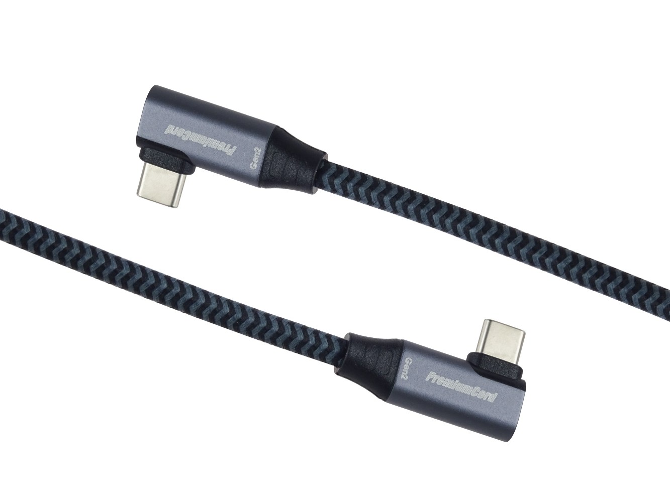PremiumCord USB-C 2x zahnutý kabel ( USB 3.2 GEN 2x2, 5A, 100W, 20Gbit/s ) bavlněný oplet, 3m