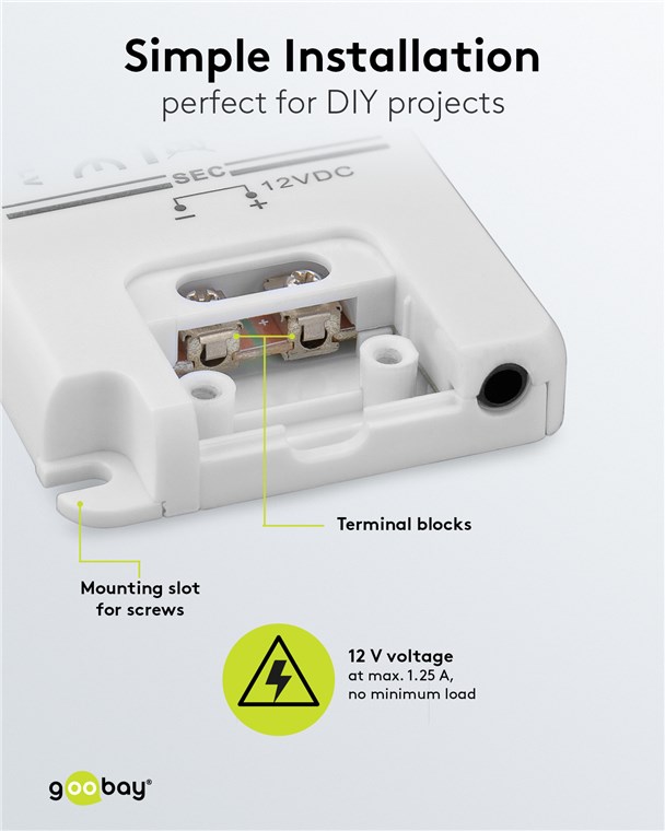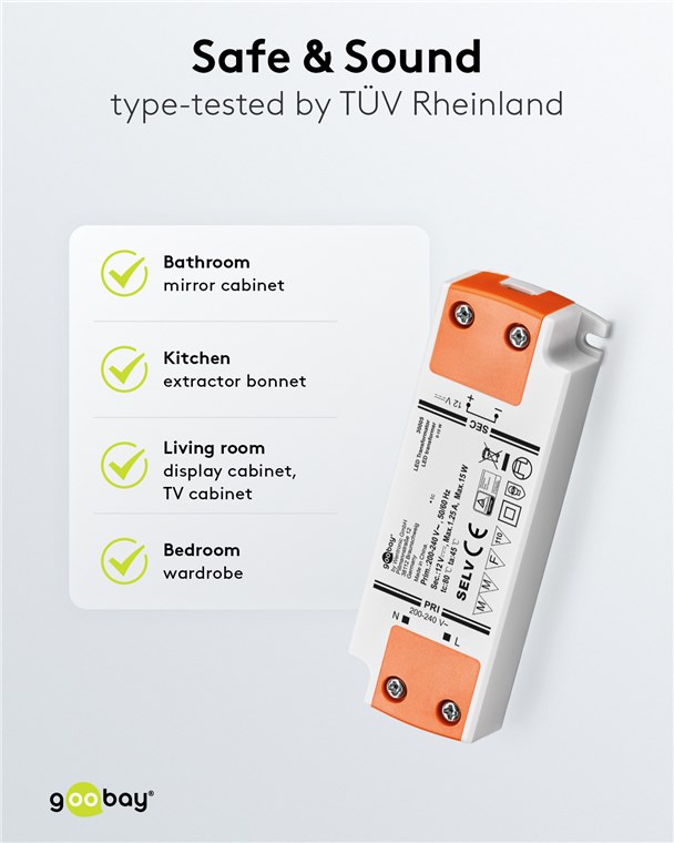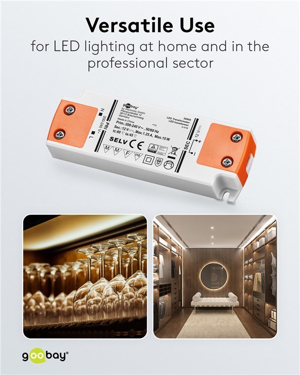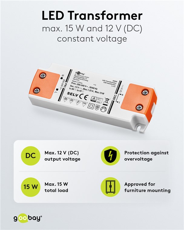 goobay LED transformátor 12 V (DC), 15 W pro LED diody s celkovým zatížením do 15 W a stejnosměrným napětím 12 V (DC)