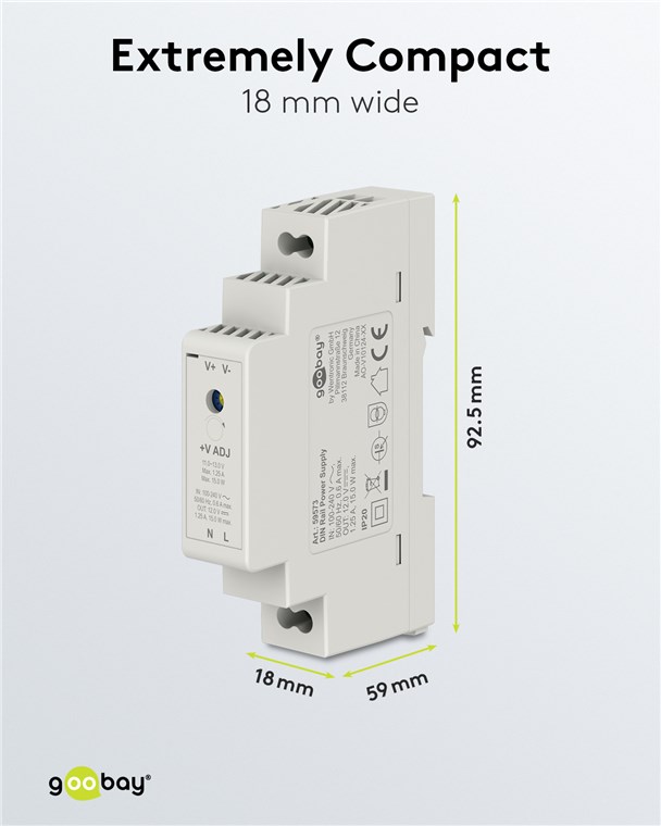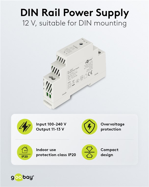 goobay napájecí zdroj do DIN lišty 12 V (DC), max.proud 4.5 A, výkon 54 W, napájecí zdroj na DIN lištu je ideálním řešením pro zařízení se na stabilním zdrojem konstantního stejnosměrného napětí, např. zvonky, přístupové systémy nebo senzory.