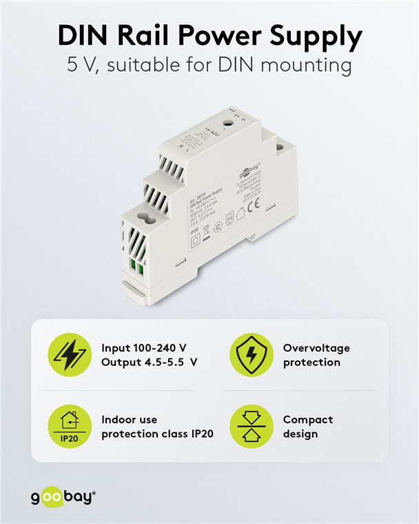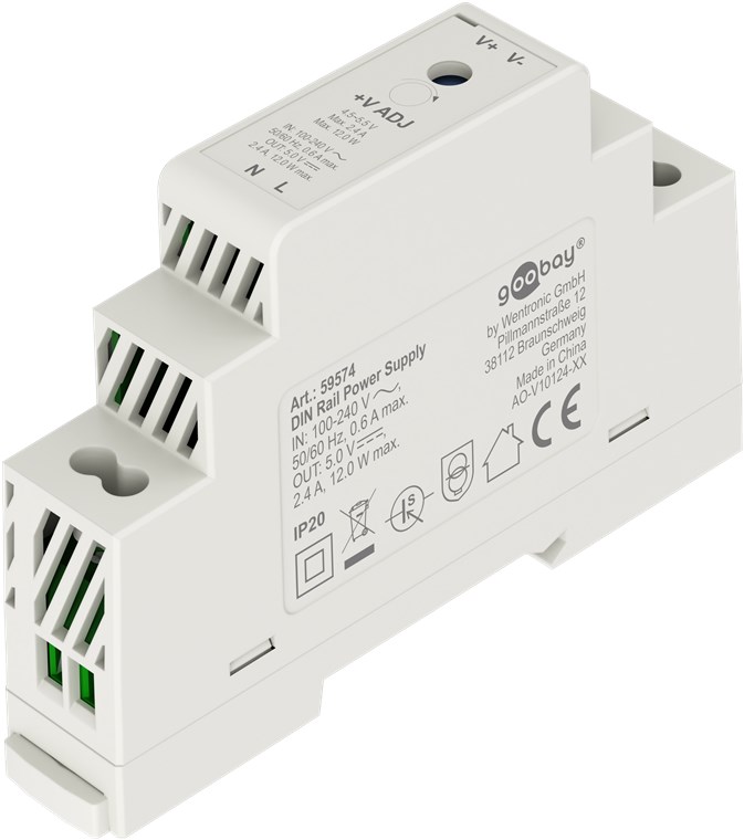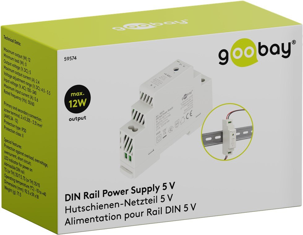 goobay napájecí zdroj do DIN lišty 5 V (DC), max.proud 2.4 A, výkon 12 W