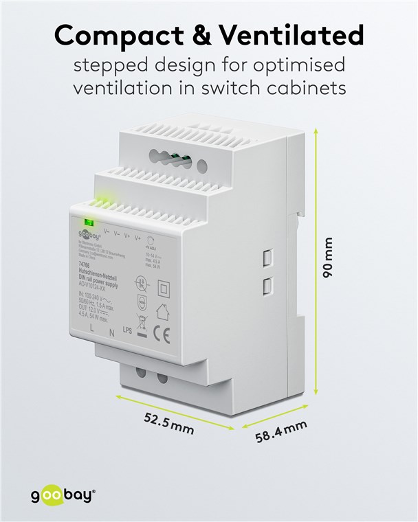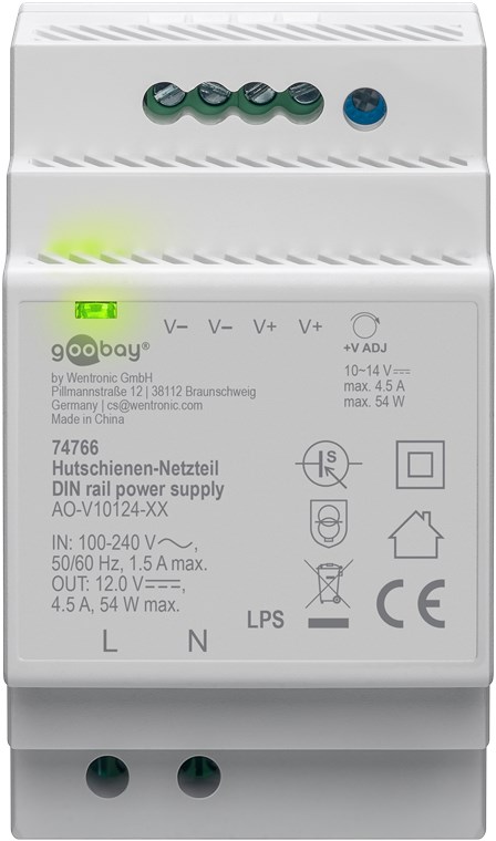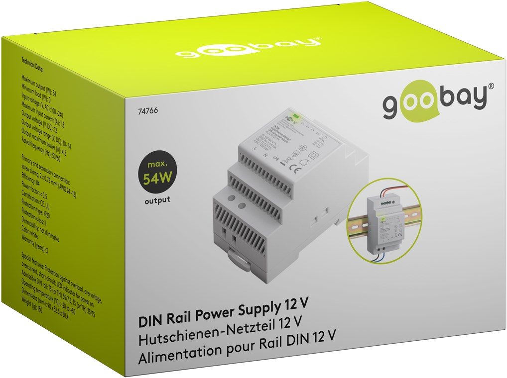 goobay napájecí zdroj do DIN lišty 12 V (DC), max.proud 4.5 A, výkon 54 W