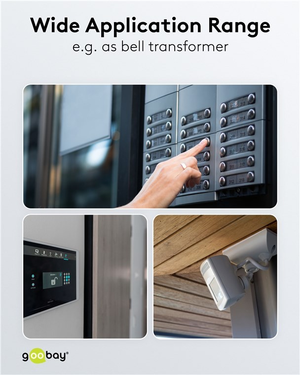 - Napájecí zdroj LED 12 V je vhodný jako transformátor pro zvonek, pro provoz systémů sledování a přístupu, otvíračů dveří, dveřních interkomů, zvonkových systémů atd.