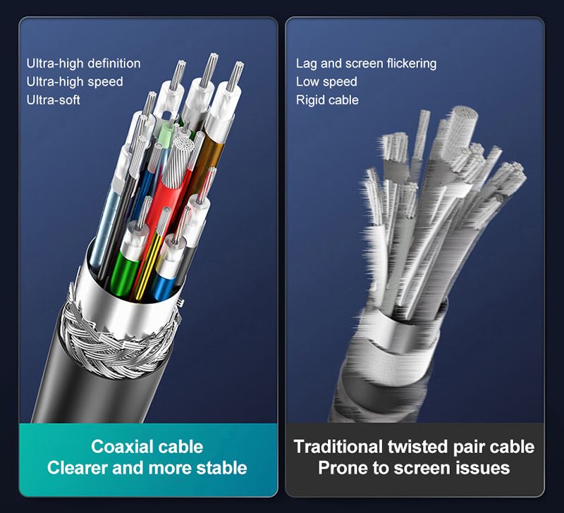 - Koaxiální měděné vnitřní vodiče umožňují vysoký datový přenos