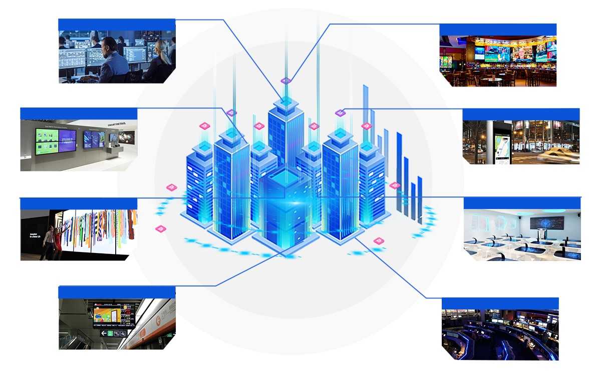 - Vytváření víceobrazovkového spojení s videostěnou až 5×5 (včetně také 1×1 / 1×2 / 1×3 / 1×4 / 1×5 / 2×1 / 2×2 / 2×3 / 2×4 / 2×5 / 3×1 / 3×2 / 3×3 / 3×4 / 3×5 / 4×1 / 4×2 / 4×3 / 4×4 / 4×5 / 5×1 / 5×2 / 5×3 / 5×4 / 5×5) pomocí přepínače a ovládané aplikací. Podporuje 256 vstupů signálových zdrojů a 256 výstupů signálu, což poskytuje flexibilní konfiguraci matice typu „mnoho k mnoha“ (při připojení více než 100 vysílačů a přijímačů vyžaduje ovládání pomocí aplikace).