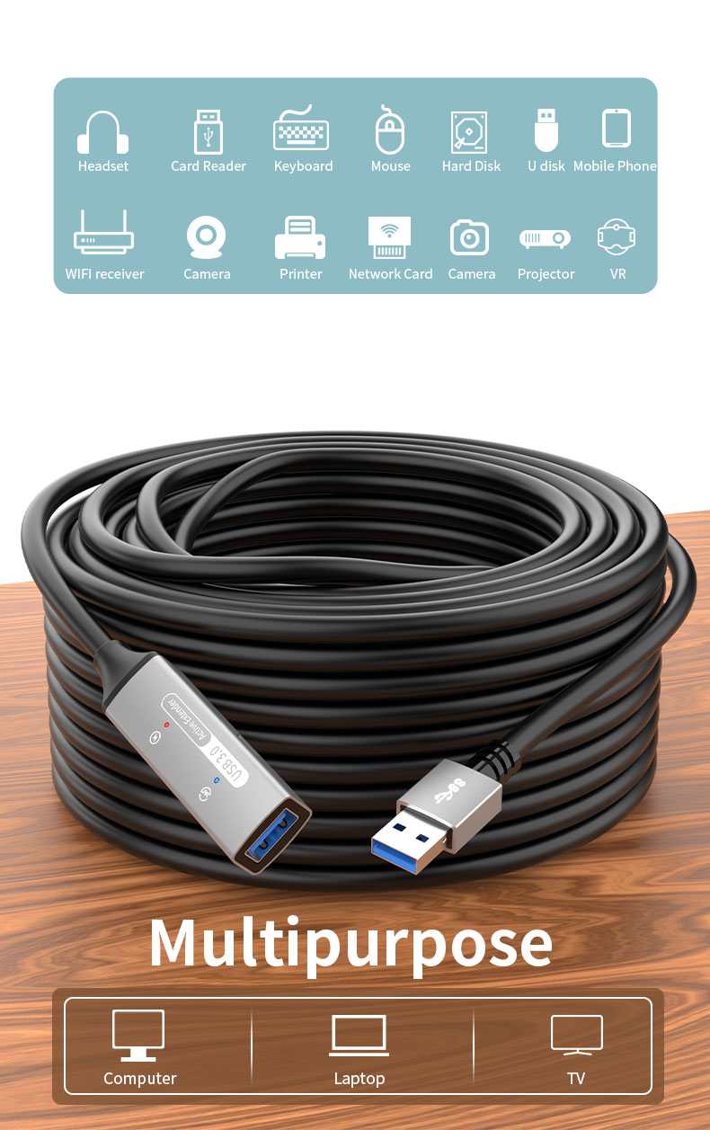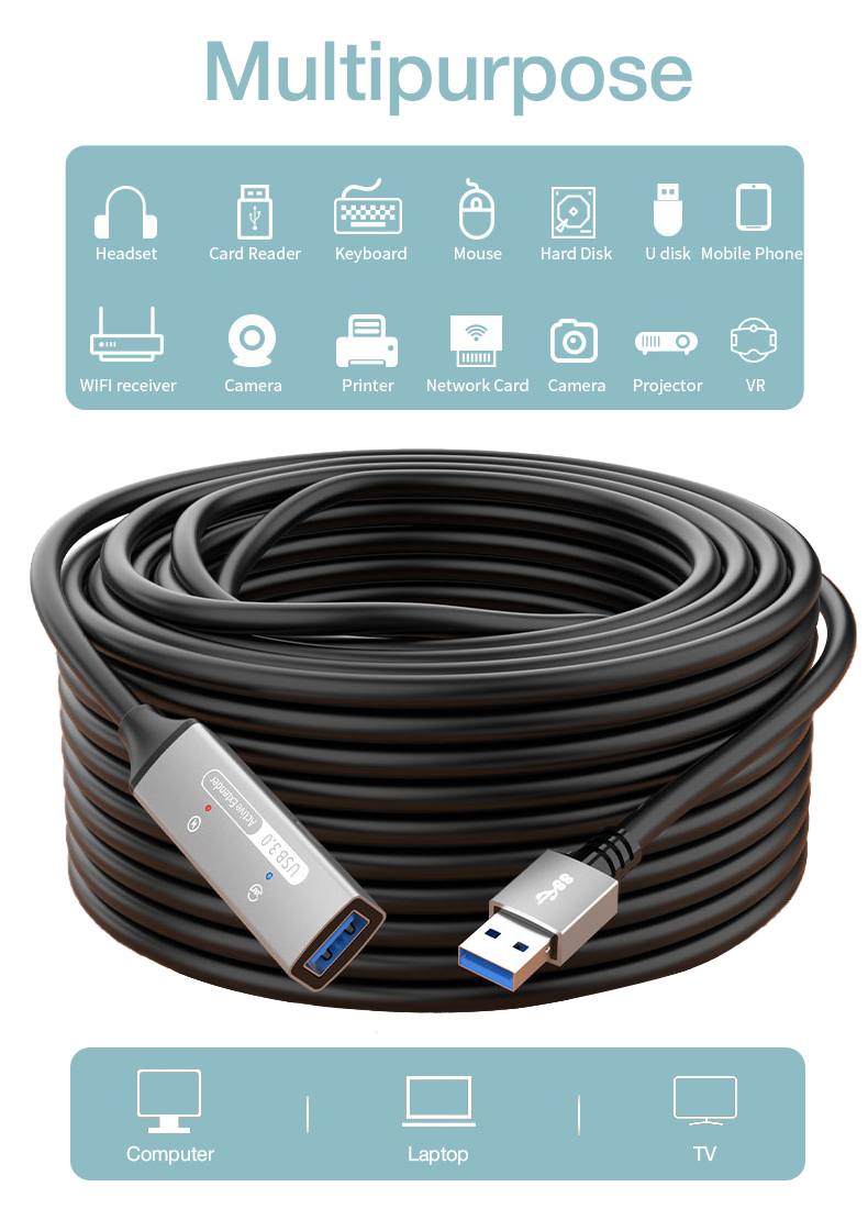 Kabel má aktivní zesilovač a je vhodný pro prodloužení USB3.0 a USB2.0 kabelu o dalších 30m . Standardní USB pasivní kabel je omezen délkou maximálně 5m. Pomocí tohoto aktivního kabelu je možné prodloužit délku o 30m.