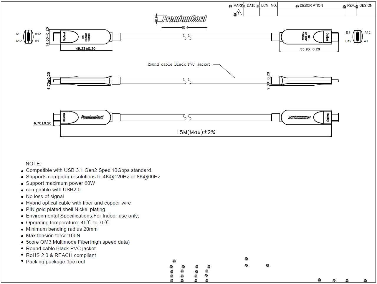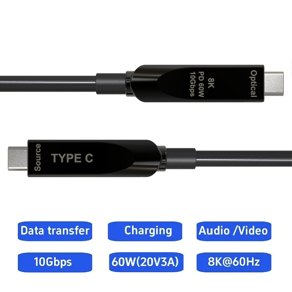 PremiumCord USB-C optický fiber video AOC kabel rozlišení 4K@60Hz 1080p , tento kabel umožňuje přenést video na velkou vzdálenost z USB-C do monitoru/TV/projektoru se vstupem USB-C za pomoci optického vlákna.