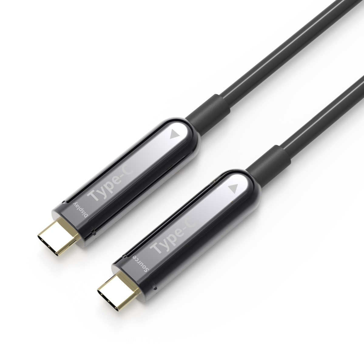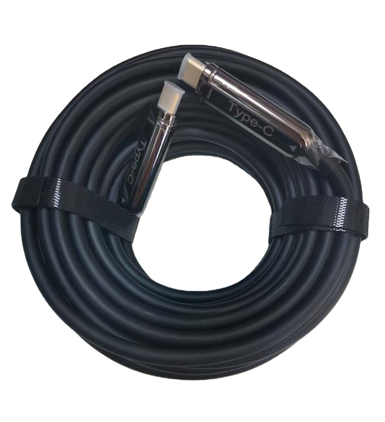 Metalické USB-C kabely nejsou schopné propojit velké vzdálenosti, zde nastupují optické kabely, kde se signál v konektoru přemění na data přenášená po optickém vlákně a vzdálenost je téměř neomezená.