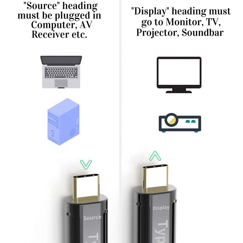Tento kabel umožňuje přenést video na velkou vzdálenost z USB-C do monitoru/TV/projektoru se vstupem USB-C za pomoci optického vlákna.