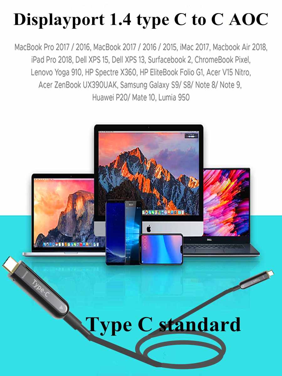 - Kabel s optickým vláknem zaručuje vysoce kvalitní přenos signálu při 4K při 60 Hz, bez ztráty signálu, neuvěřitelně vysokou rychlost 21,6 Gbps (5.4Gpbs na jeden kanál) a stabilně než tradiční kabel USB-C