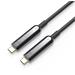 - Optický kabel USB-C podporuje rozlišení až 3840 x 2160 při 60 Hz nebo FULL HD 1080p. Tento kabel USB-C přenáší také zvuk, včetně SACD, DVD-Audio, DTS-HD Master Audio a Dolby TrueHD