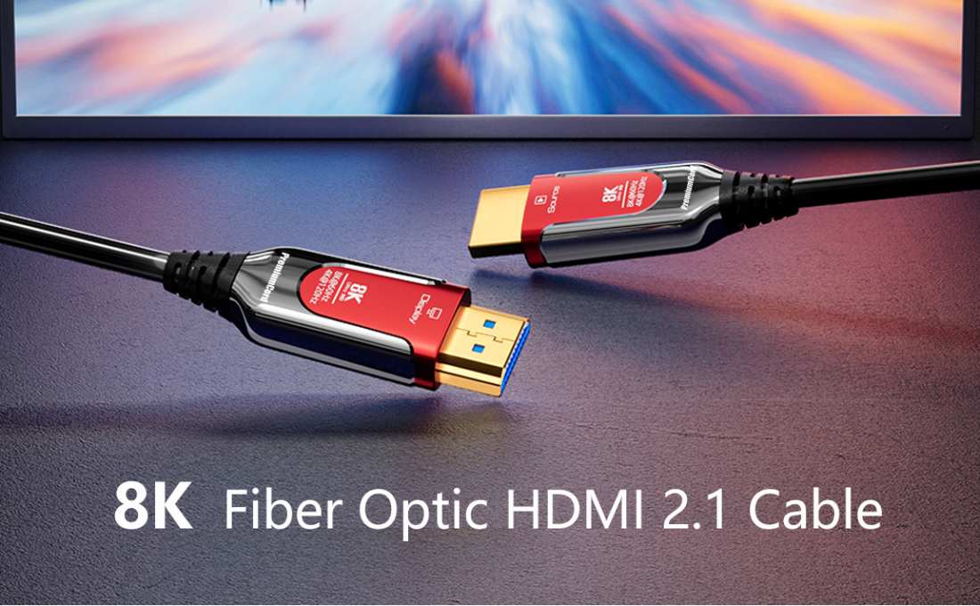 - HDMI 2.1 Ultra High Speed aktivní optický fiber kabel, podporuje HDMI2.1 nebo nižší HDMI2.0 a HDMI1.4