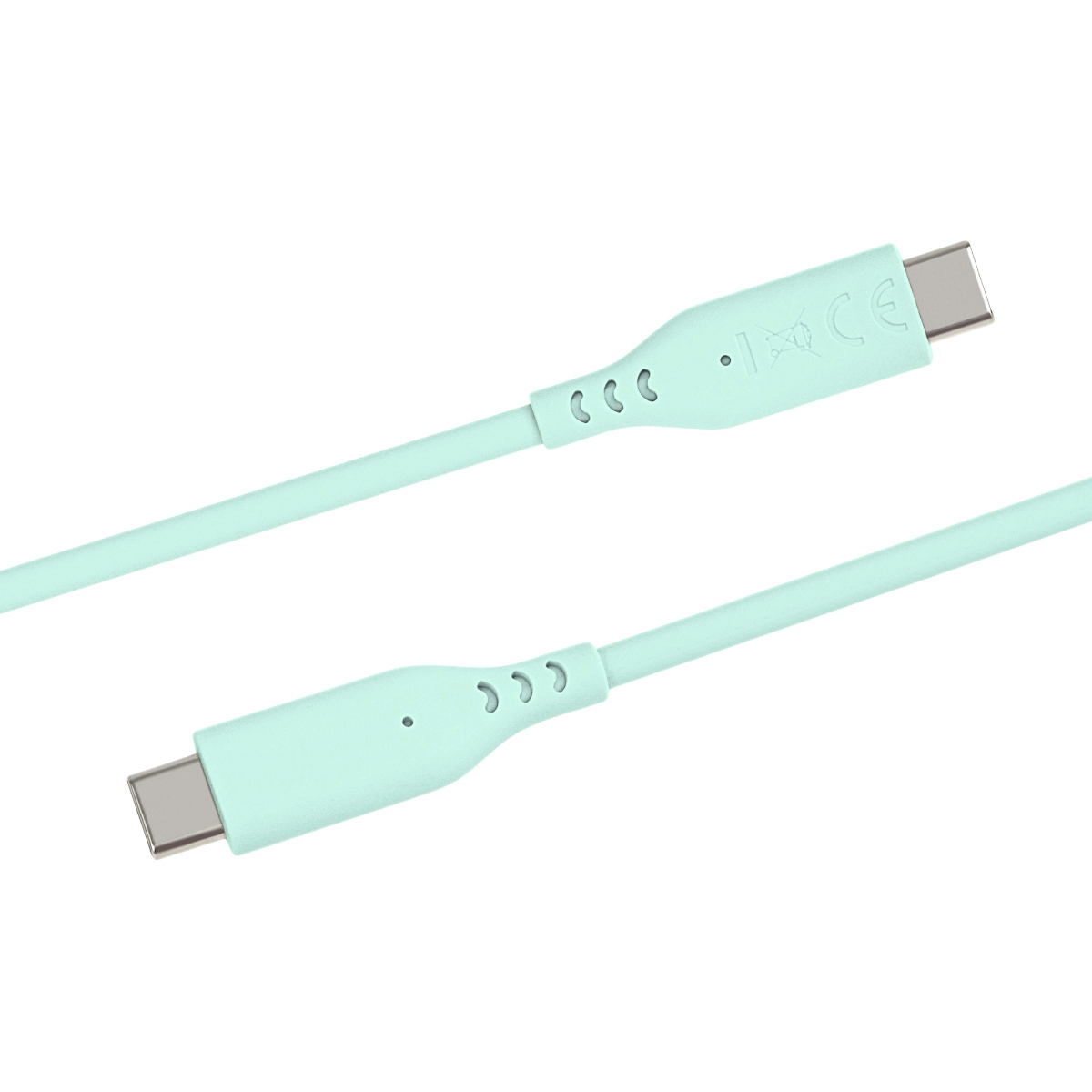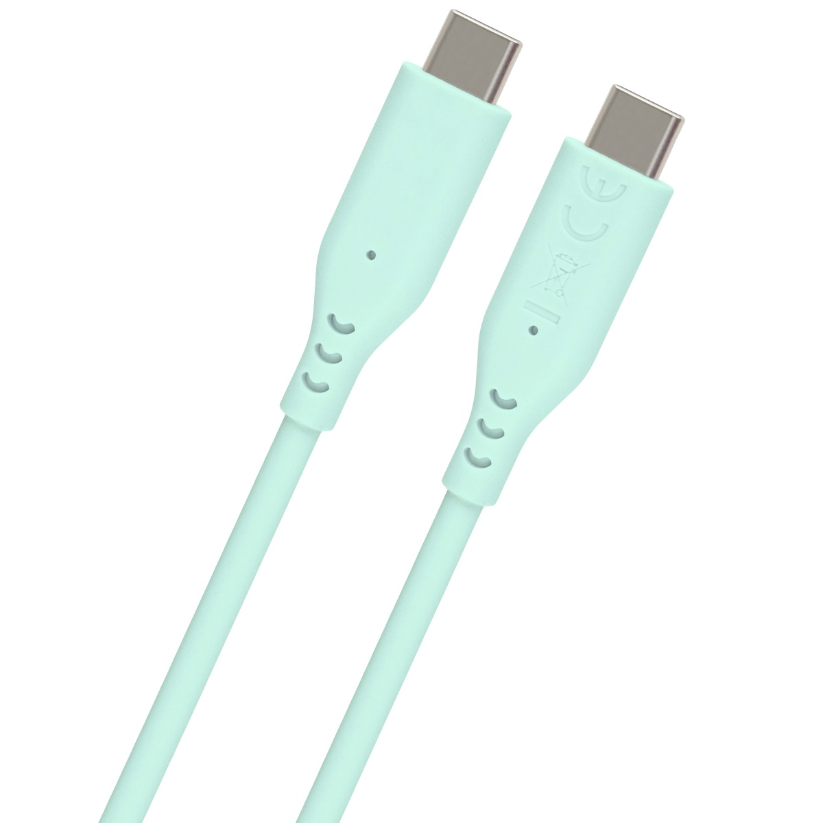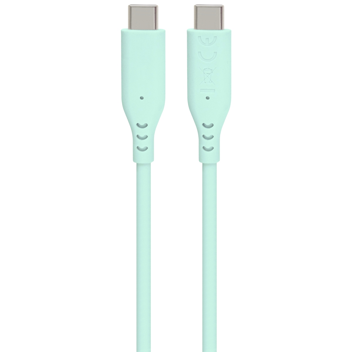 PremiumCord Silikonový kabel s konektory USB-C 60W 480Mbps tyrkysový extra měkký 1,5m